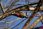 큰오색딱다구리는 28cm, 배의 윗부분은 흰색이며, 아랫부분은 붉은색입니다.