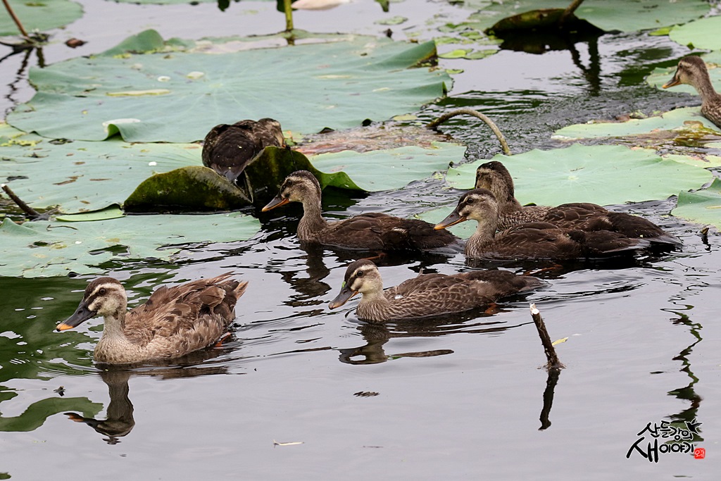 흰빰검둥오리 어미와 청년급 아기새들이 나들이 나섰습니다. 독립전 마지막 육추로 생각됩니다.