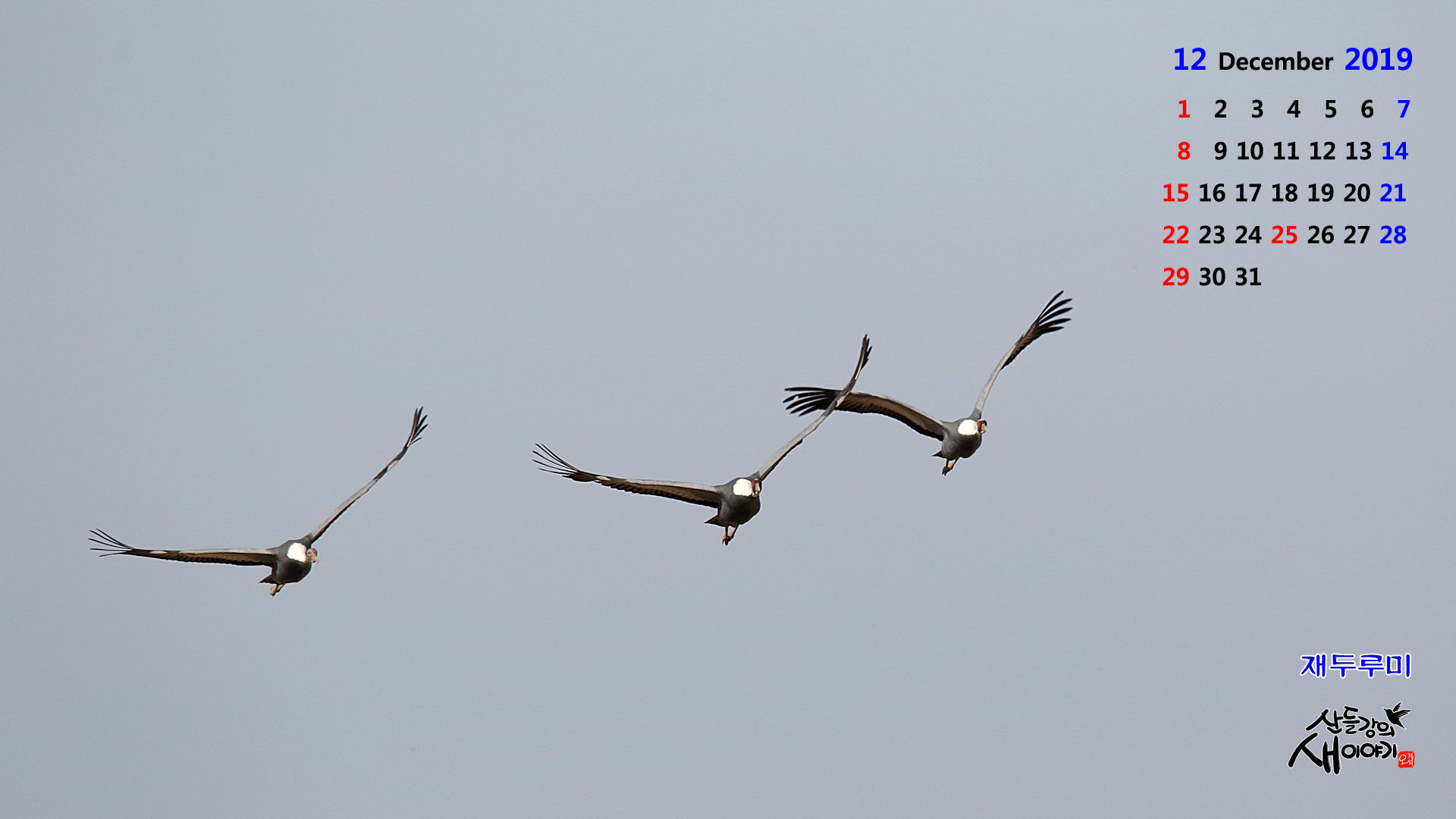 산들강입니다. 2019. 11월에 촬영한 새사진으로 만든 2019년 12월 PC바탕화면 달력(1920*1080)입니다.