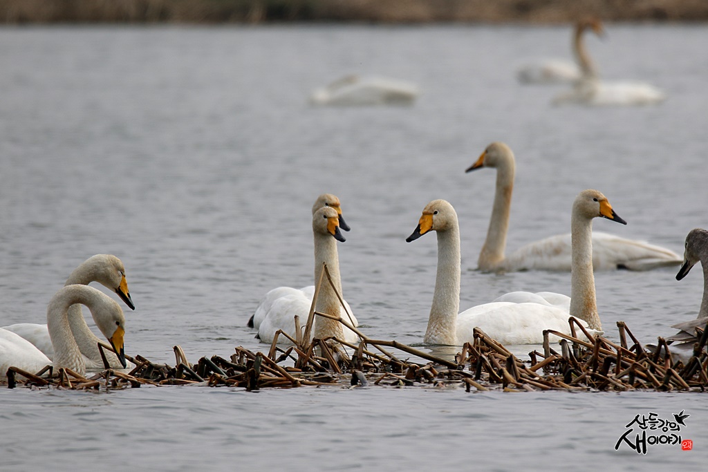 우리동네를 가로지르는 금호강에서 멸종위기종이자 천연기념물인 큰고니떼를 만났습니다.