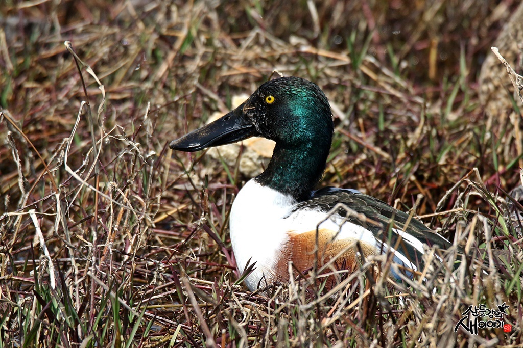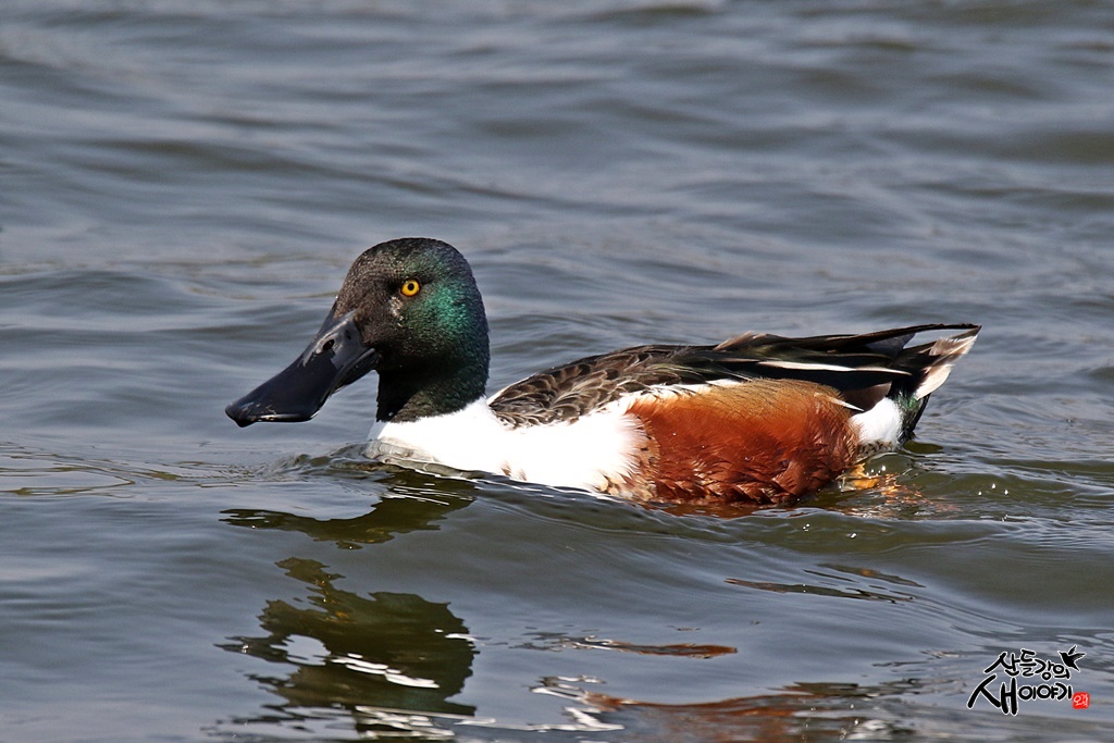 경북 경산의 작은 호수에서 만난 넓적부리 수컷입니다.