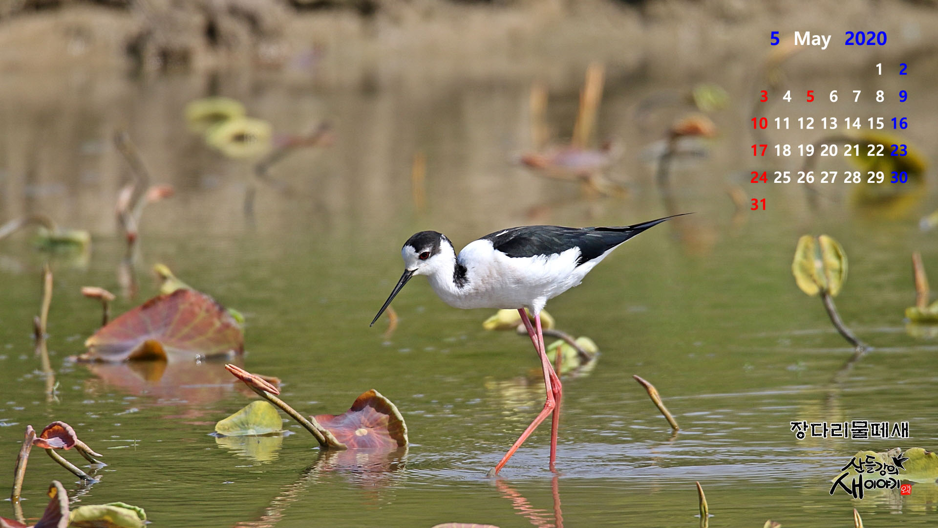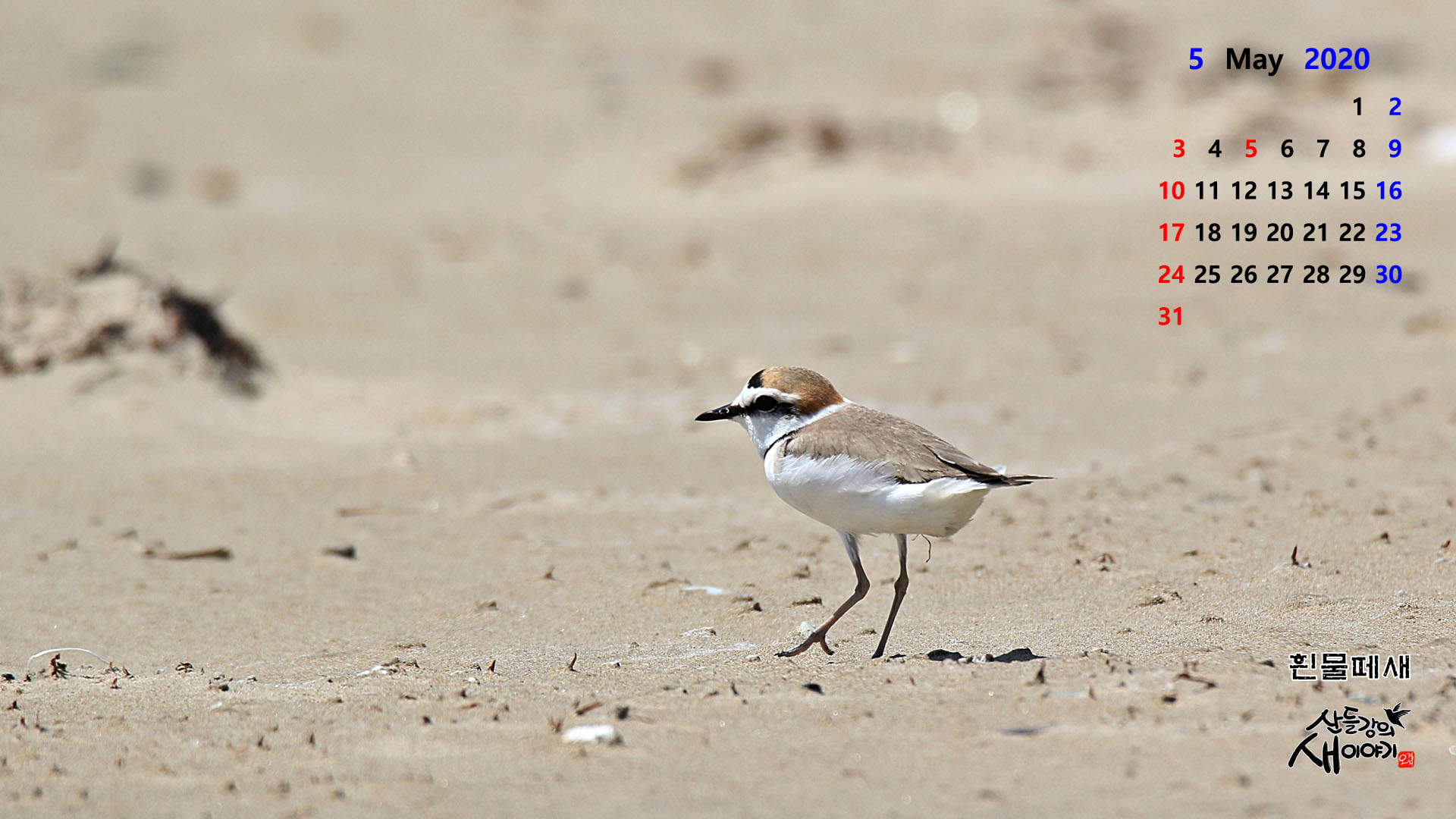 2020년 4월중 촬영한 새사진으로 만든 2020년 5월, PC바탕화면 달력(1920*1080)입니다.