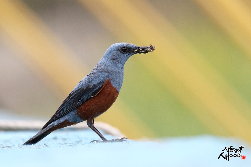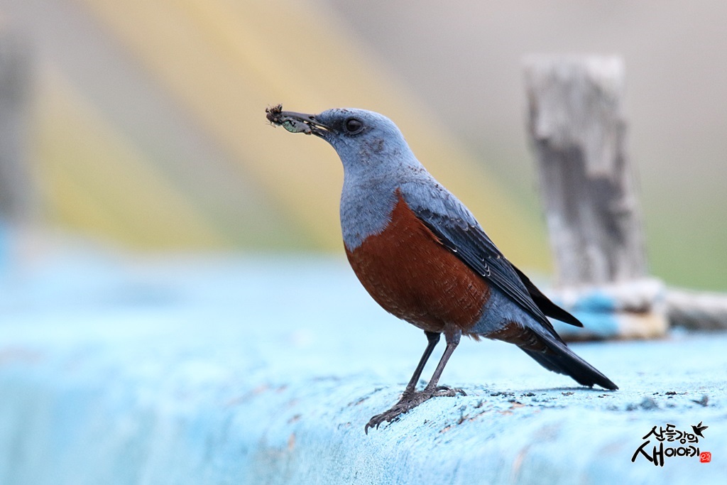 어린이날 동해안 탐조에 나섰습니다. 아무도 없는 바닷가에서 먹이를 나르는 바다직박구리 수컷을 만났죠.