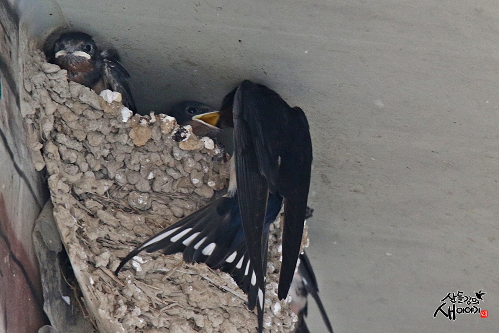 제비 둥지가 많은 곳을 둘러보다가 새끼들이 머리를 내밀고 있는 모습이 관찰되었습니다.