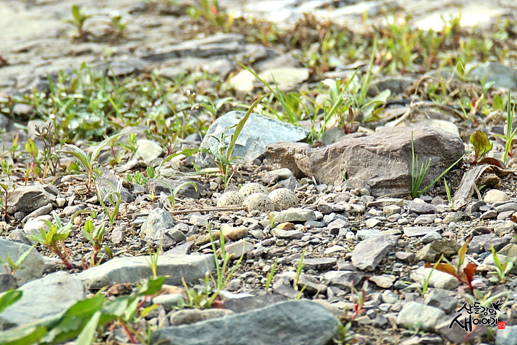 계곡의 작은 하중도에 꼬마물떼새가 둥지를 틀었습니다. 알은 총 4개네요. 무사해야할텐데요.