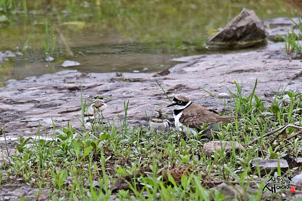 10여일 후 다시 가본 꼬마물떼새의 둥지에는 새끼 4마리가 관찰됩니다. 아!!! 다행이다.