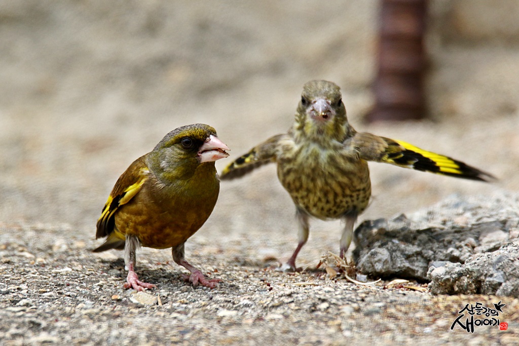 방울새 육추 이후에 이소를 끝내고 나서 아기새가 엄마를 쫓아다니는 모습인데 애교를 계속부립니다.