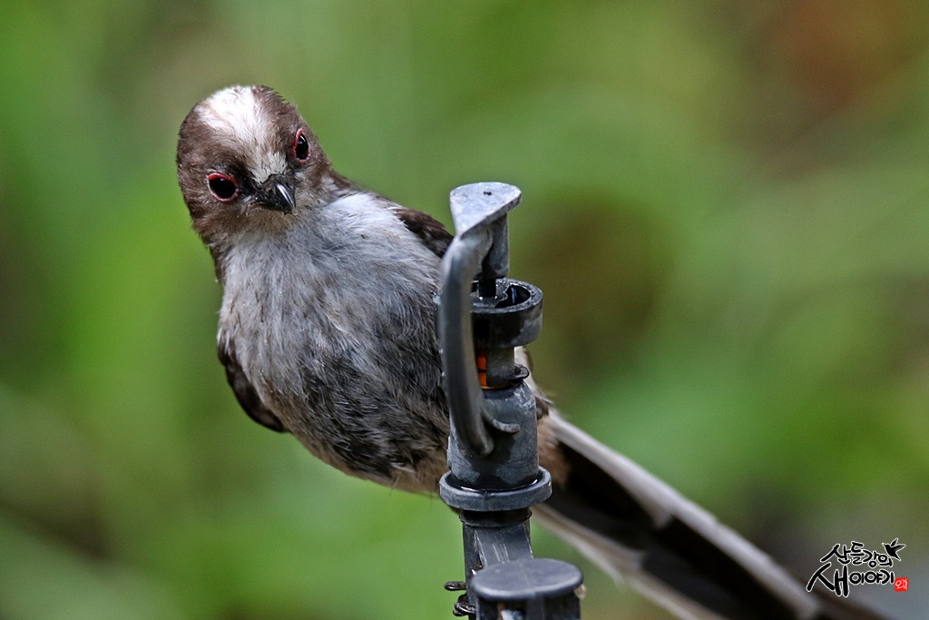육추를 끝낸 오목눈이 유조들이 폭염경보를 피해 시원한 물을 먹을려고 물 스프레이기에 붙어 있다.