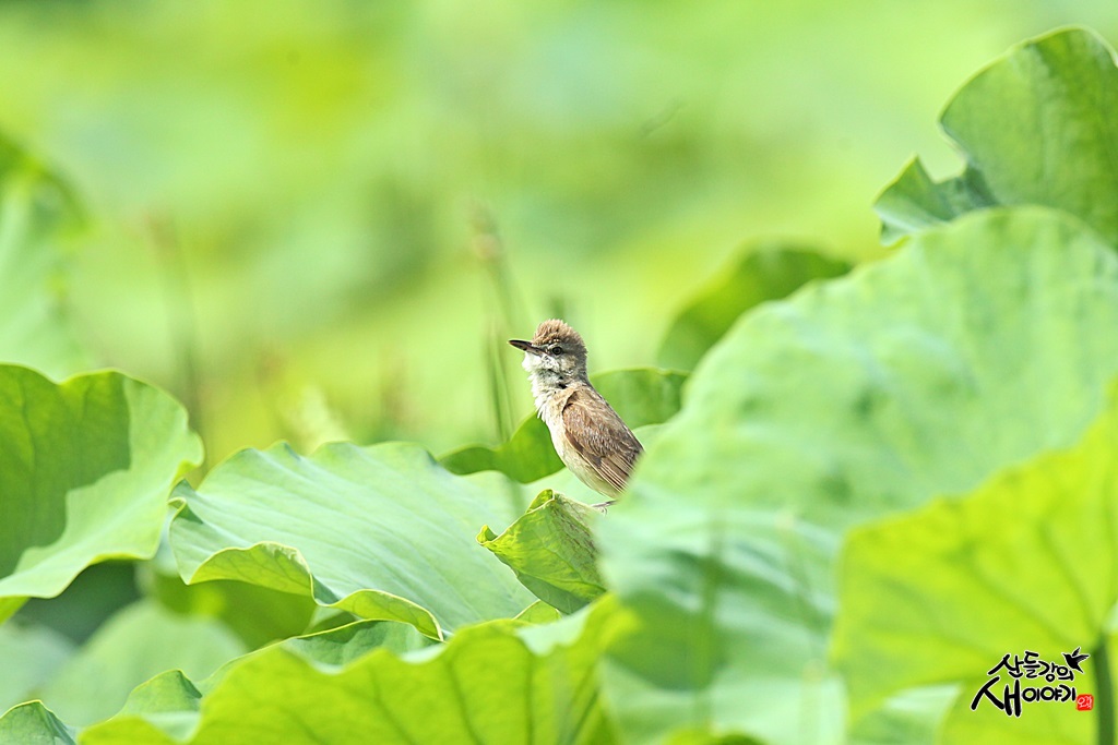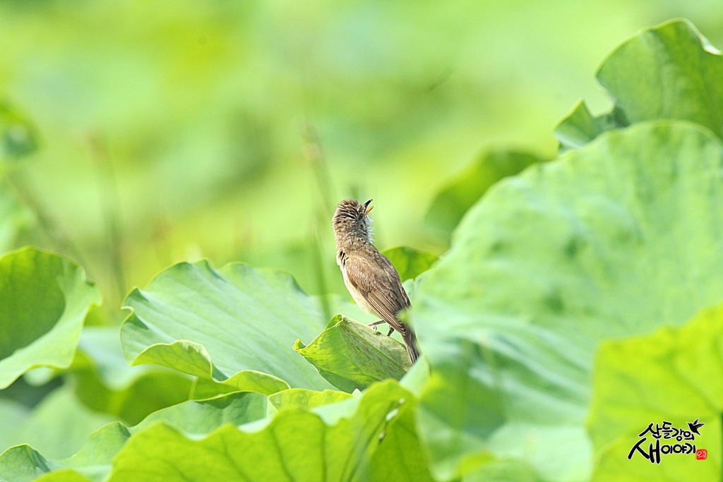 연잎 위에 앉은 개개비 한마리 목청 터질 듯 노래부릅니다. '개', '개', '개', '비', '비', '비'