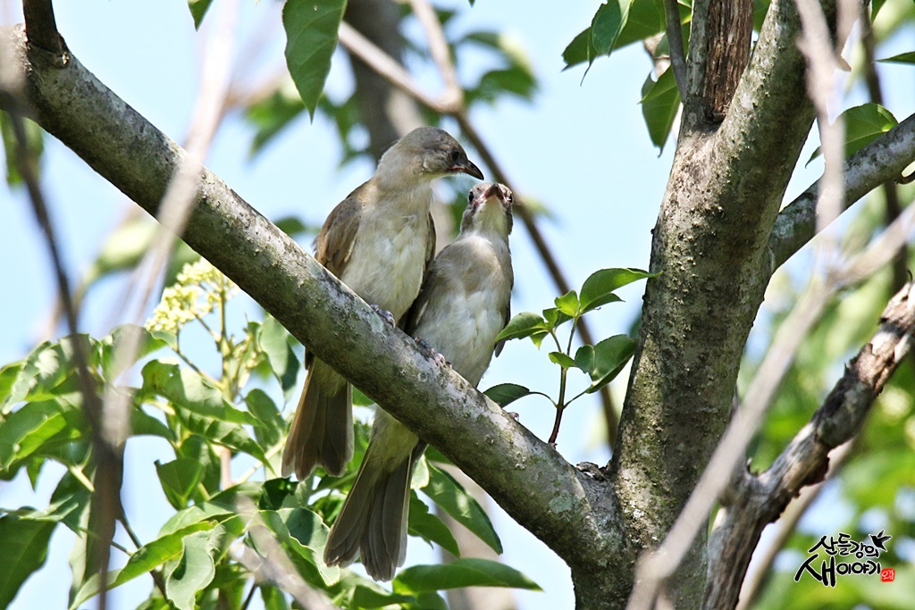 조금 기다리다 보니 어미가 와서 먹이를 주고 가네요. 이소한지 얼마되지 않았나 봅니다.