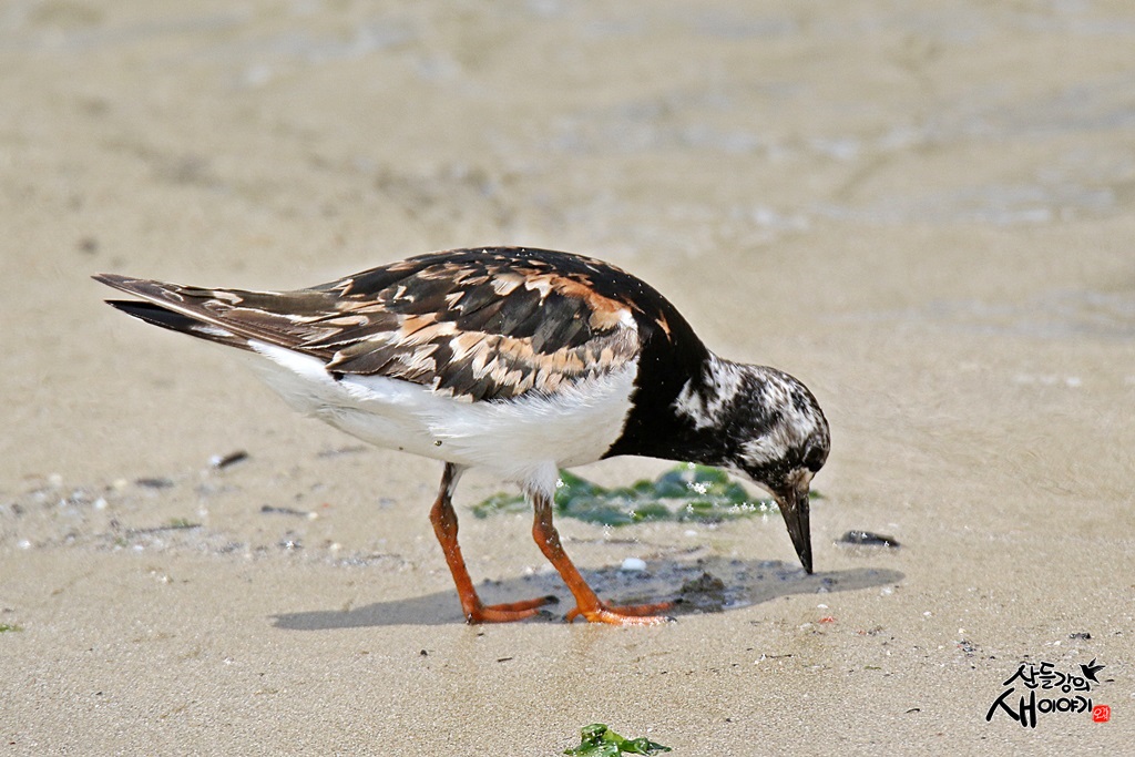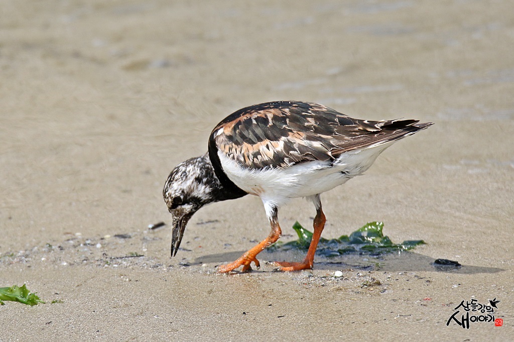 다리는 짧은 붉은색 또는 주황색이고 작은 돌이나 조개껍질 등을 부리로 밀면서 먹이를 찾는다.