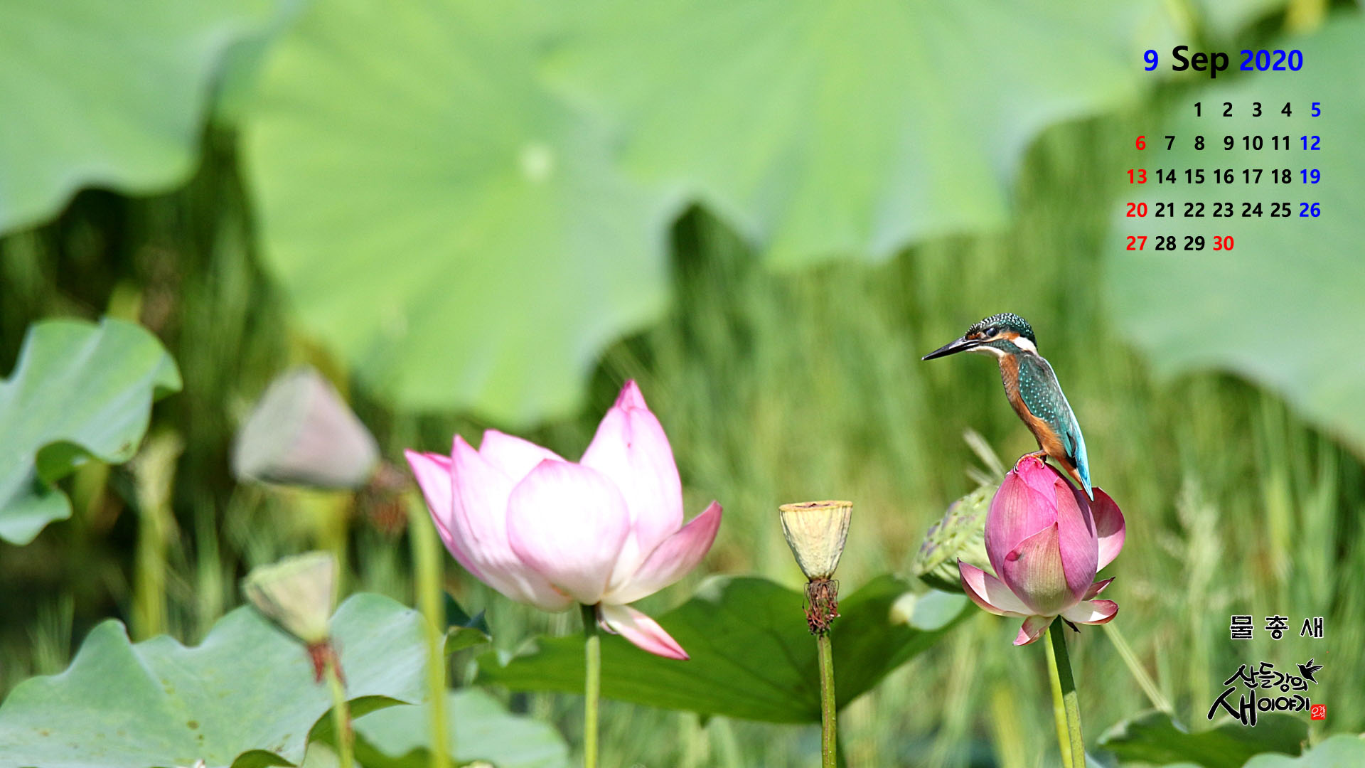 2020년 8월중 촬영한 새사진으로 만든 2020년 9월, PC바탕화면 달력(1920*1080)입니다.