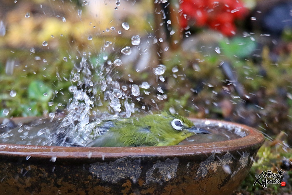 2020.11.16. 대구광역시 달서구 대곡동에 위치한 대구수목원에서 만난 아이라인이 예쁜 동박새 목욕샷입니다.