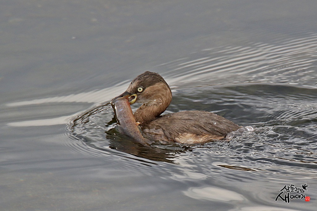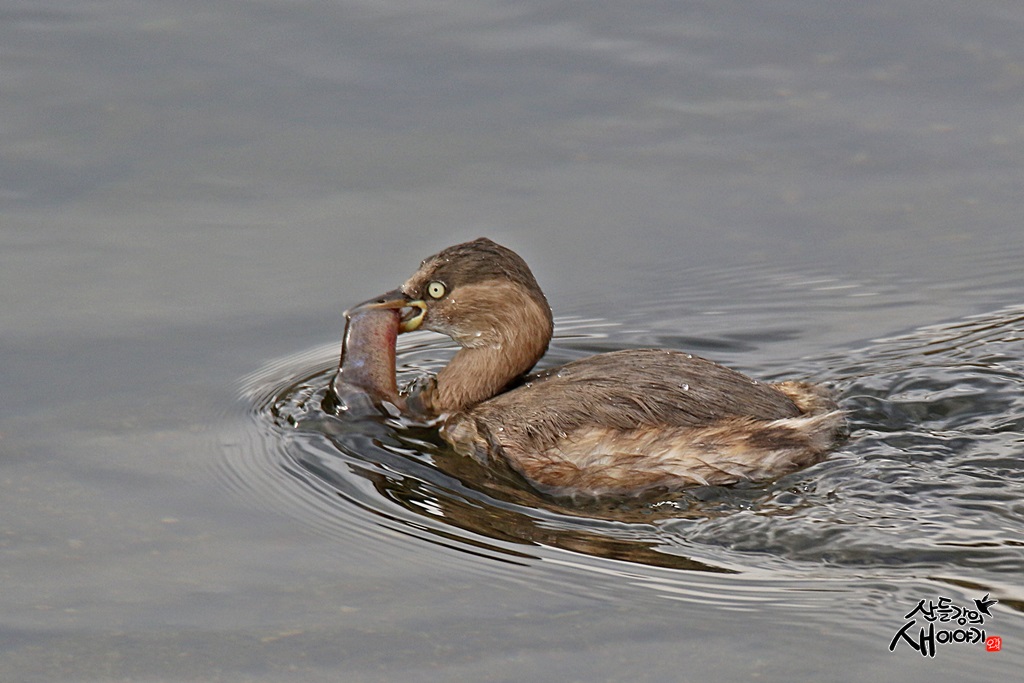2021.1.15. 대구광역시 수성구 중동의 신천에서 만난 논병아리입니다. 미꾸라지를 사냥하고 열심히 달립니다.