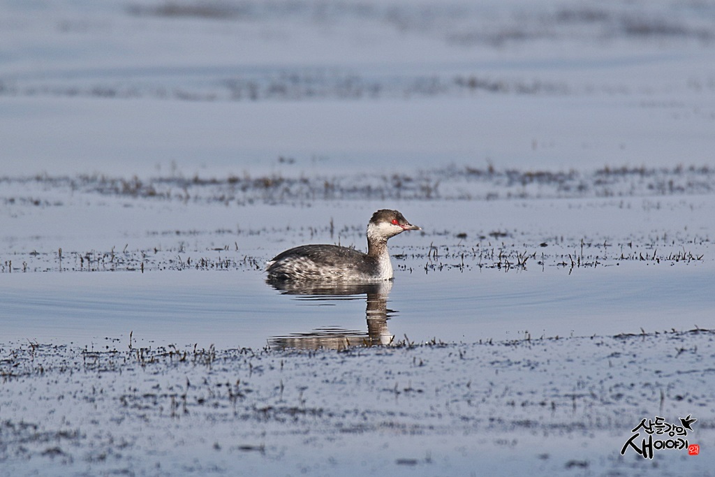 경북 동해안에서 만난 귀뿔논병아리는 논병아리목 논병아리과에 속하며, 크기가 33cm인 겨울철새입니다.