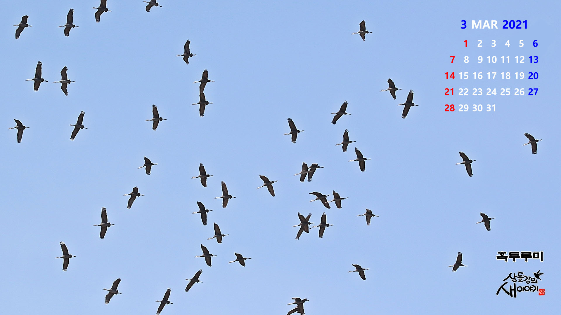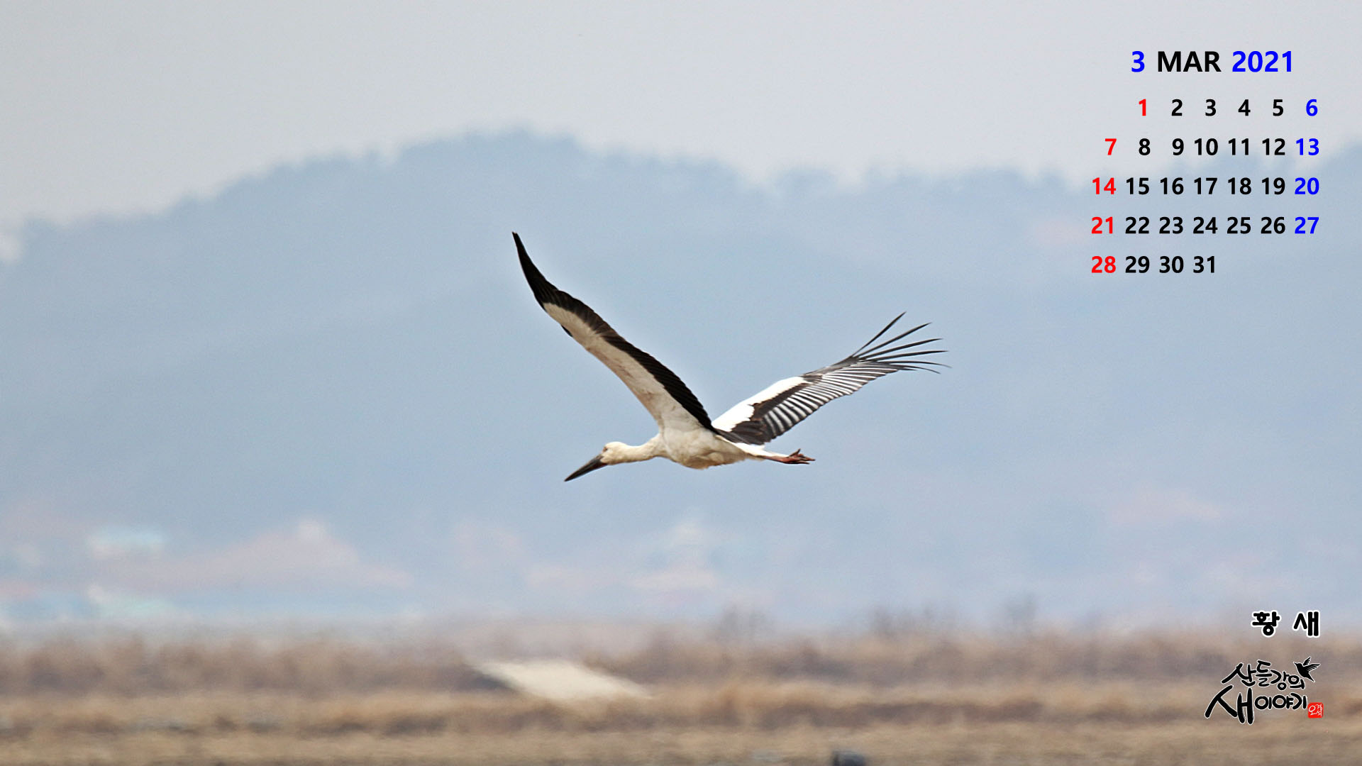 2021년 새해 야생동물 사진으로 만든 2021년 3월, PC바탕화면 달력(1920*1080)을 소개합니다.