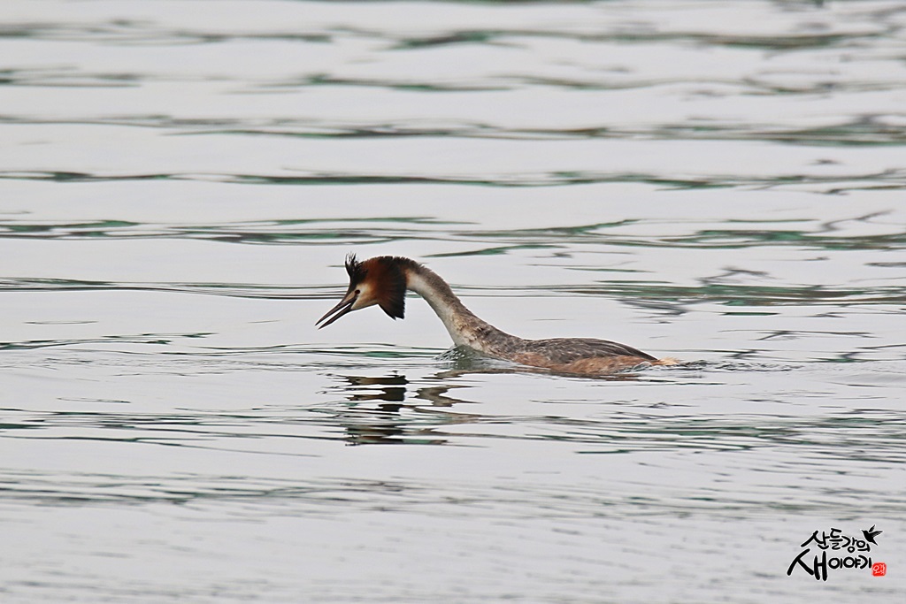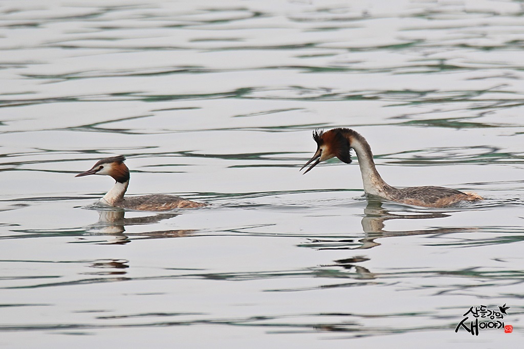 2021.3.27. 경북 포항시 남구를 지나가는 형산강에서 만난 뿔논병아리로 수컷이 암컷을 찾지만 기회를 주지 않네요.