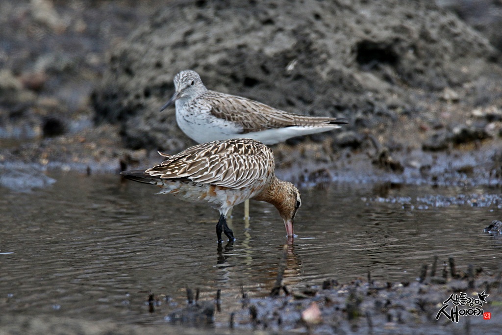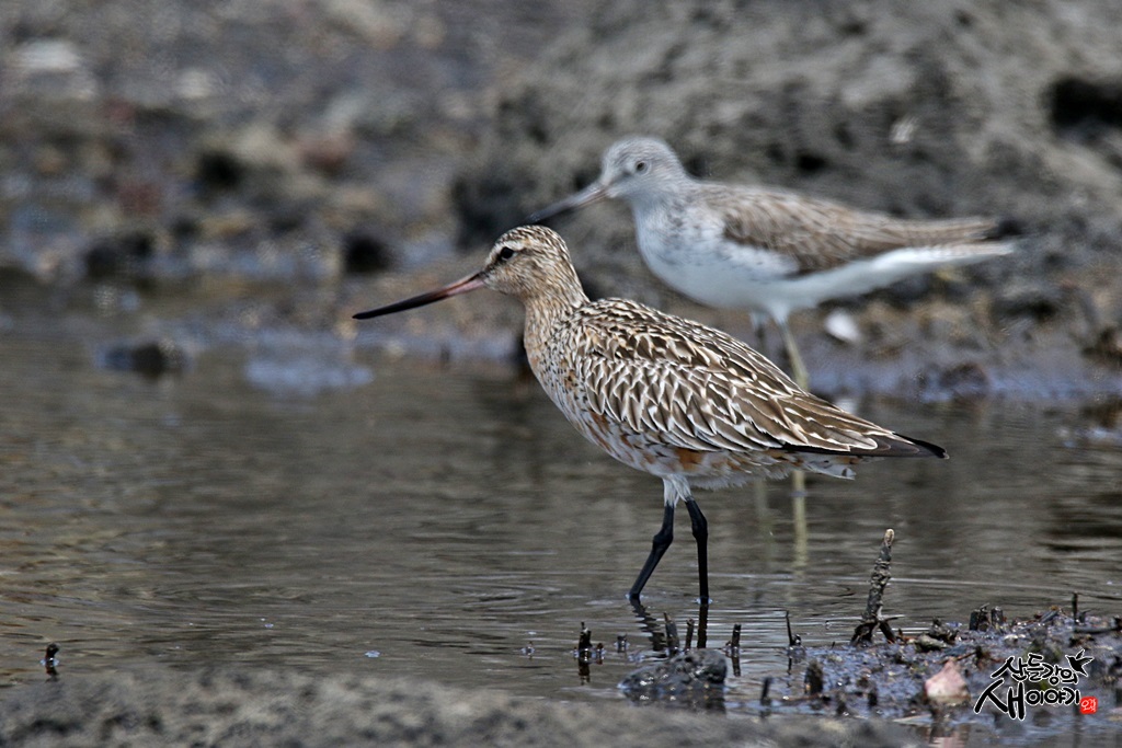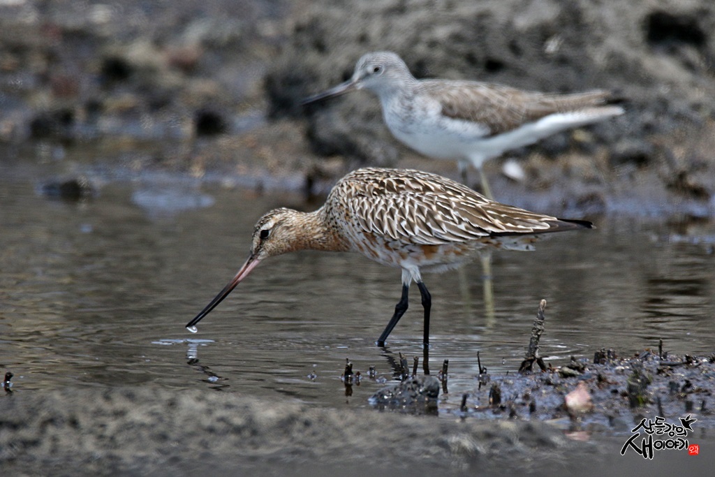 2021.4.10. 제주도 탐조여행에서 만난 큰뒷부리도요입니다. 청다리도요와 사이좋게 지내는 모습도 보이네요.