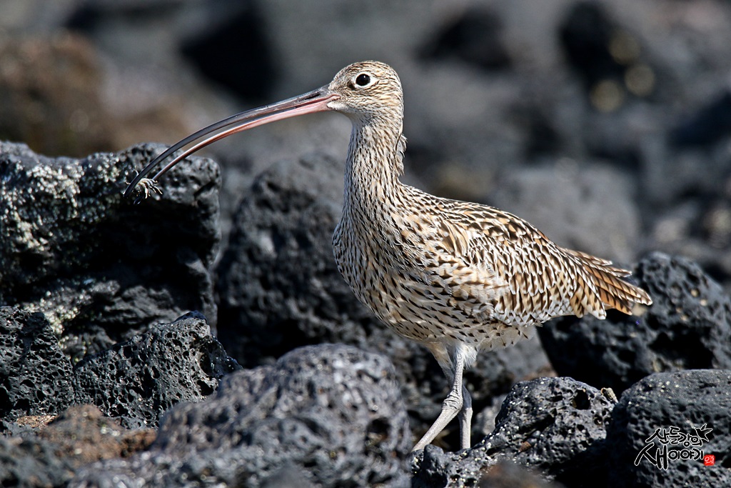 2021.4.11. 제주도 탐조여행에서 만난 알락꼬리마도요 게 사냥장면입니다. 썰물 상태에서 눈 앞에서 만났습니다.