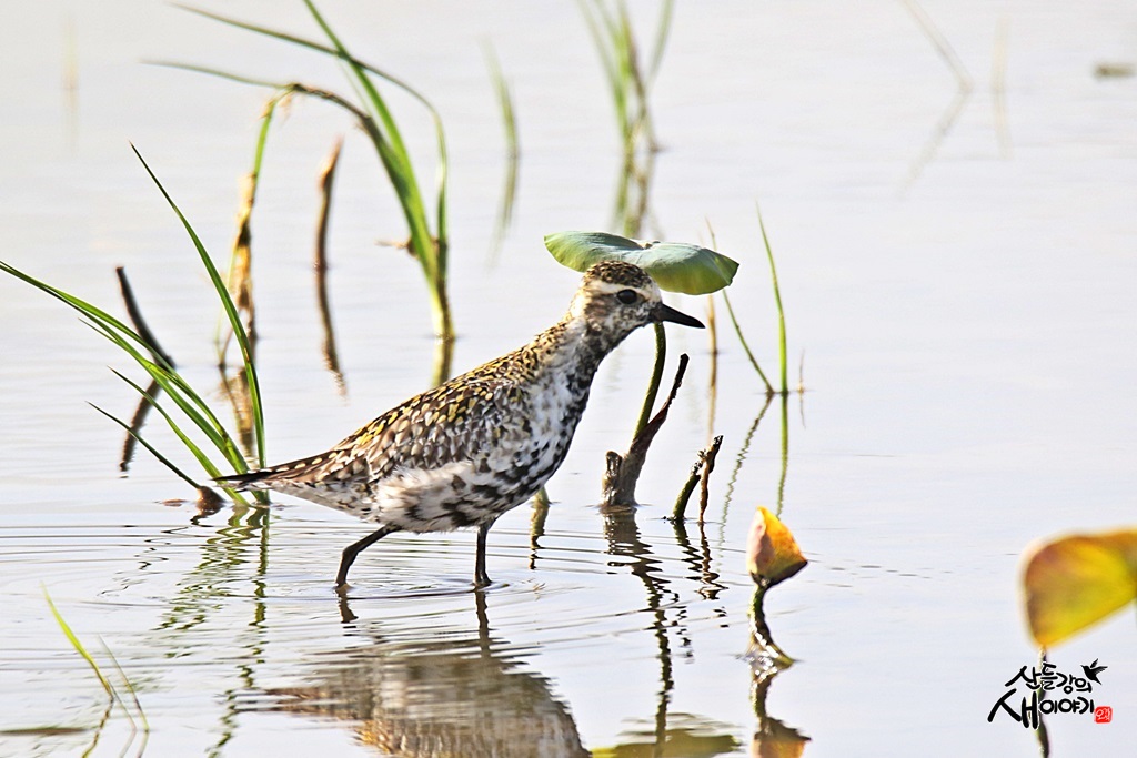2021.5.8, 아침, 대구광역시 달성군의 연밭에서 만난 검은가슴물떼새입니다. 변환깃의 모습을 보여주더군요.