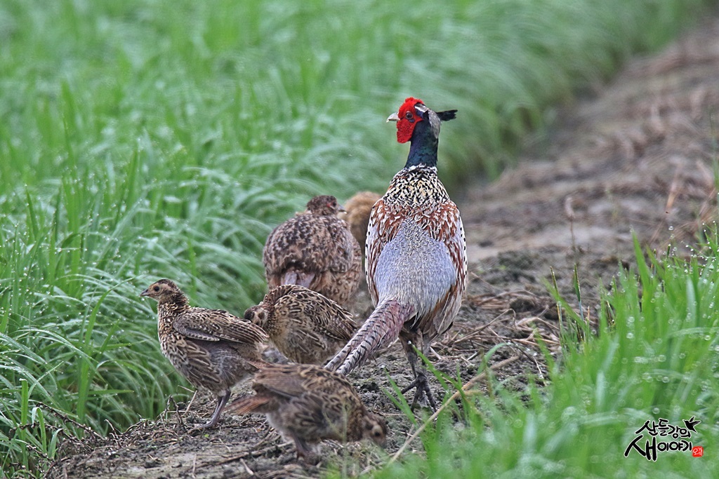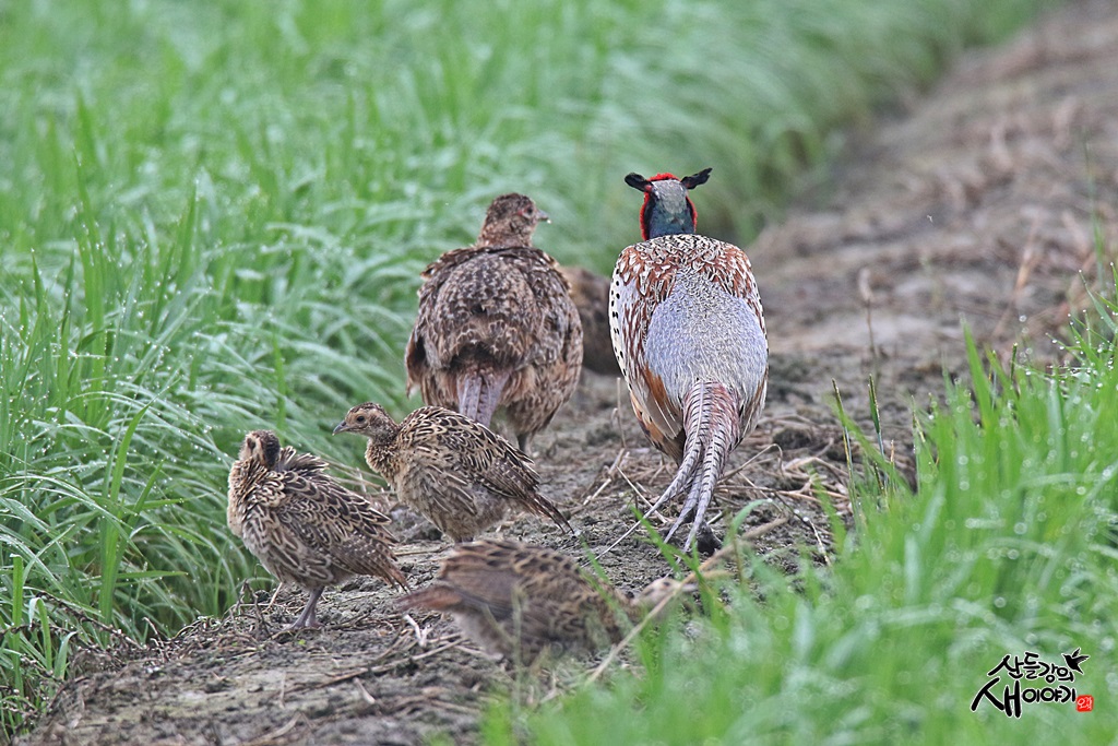 2021.6.19. 전부 군산 새만금에서 탐조하던 중 만난 꿩 가족의 나들이 장면입니다. 논두렁에서 일광욕을 즐기더군요.