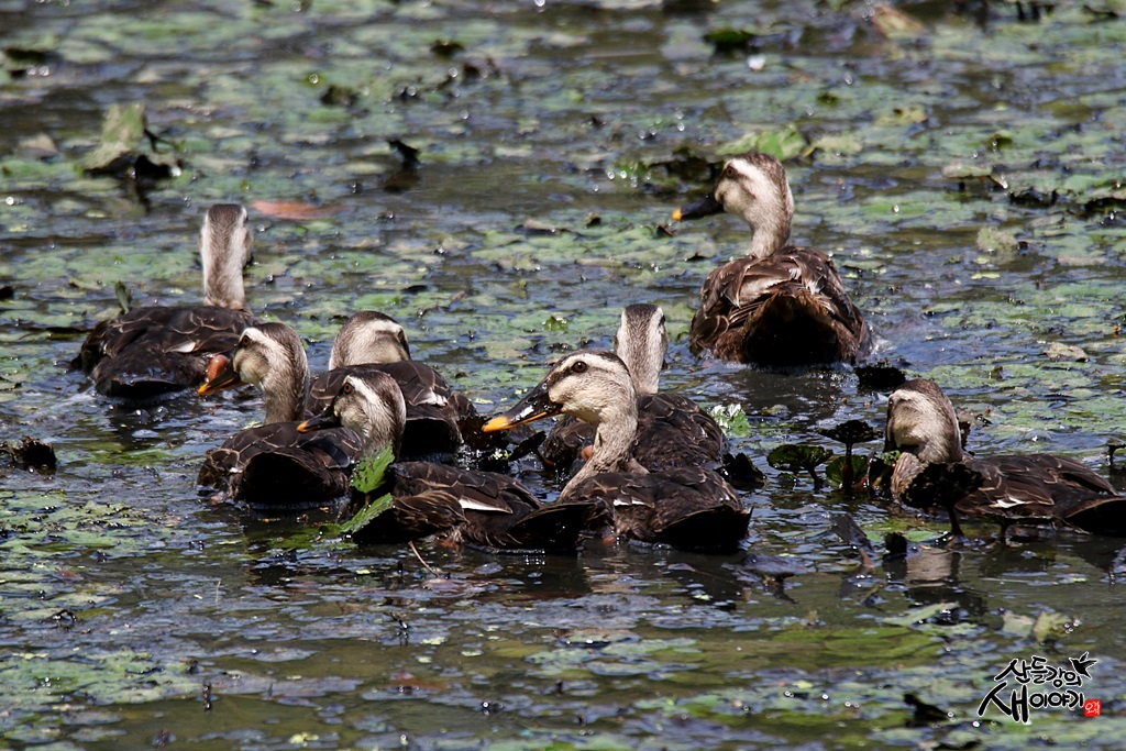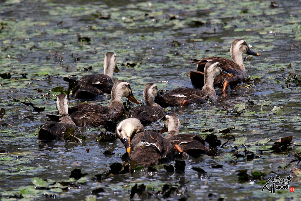 2021.8.7, 폭염 속에서 경남 창녕에 위치한 우포늪에 들렀습니다. 다 자란 흰빰검둥오리 청년 8마리를 만났습니다.