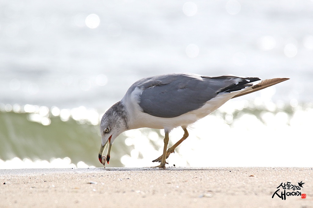 2021.9.4. 경북 포항의 동해안 바닷가를 탐조하던 중 만난 괭이갈매기입니다. 조개 줍는 모습이 보여 촬영했습니다.