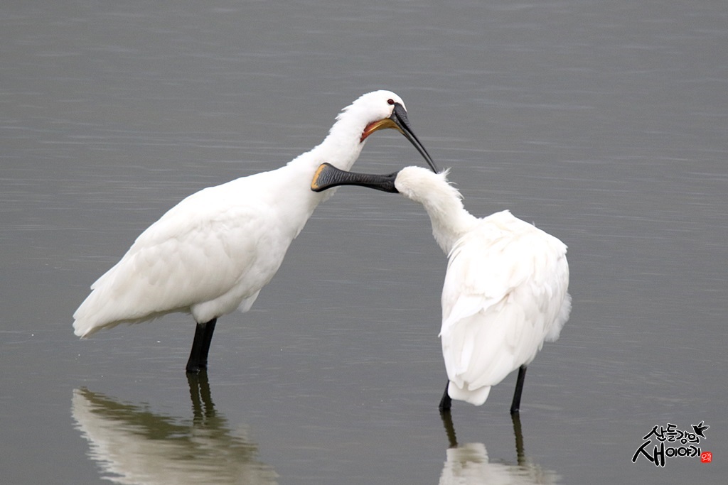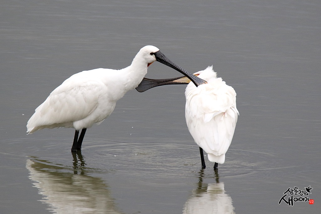 2021.11.8. 충남 서산 천수만을 탐조여행하다 만난 노랑부리저어새 부부의 애교 장면으로 8개체가 관찰되었습니다.