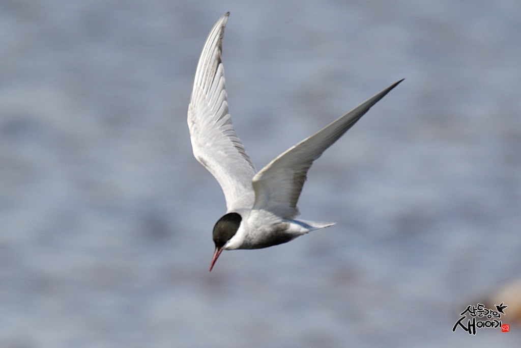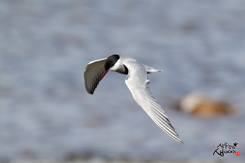2021.11.13, 토요일, 경북 포항 형산강에서 만난 구레나룻제비갈매기로 다른 갈매기들과 함께 먹이사냥(물고기)중입니다.