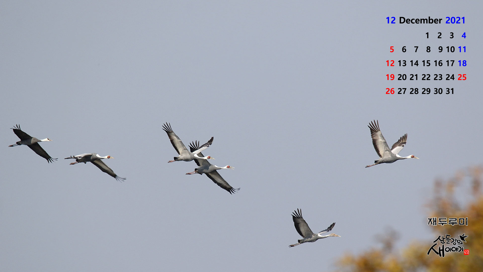 2021년 11월중 촬영한 새사진으로 만든 2021년 12월, PC바탕화면 달력(1920*1080)을 소개합니다.
