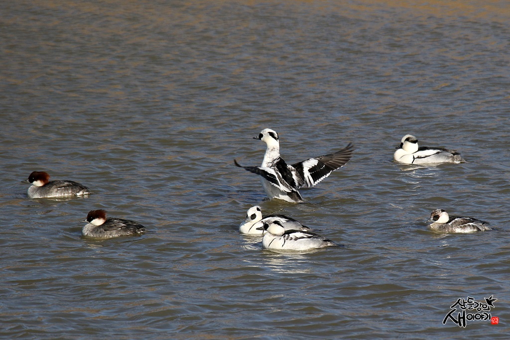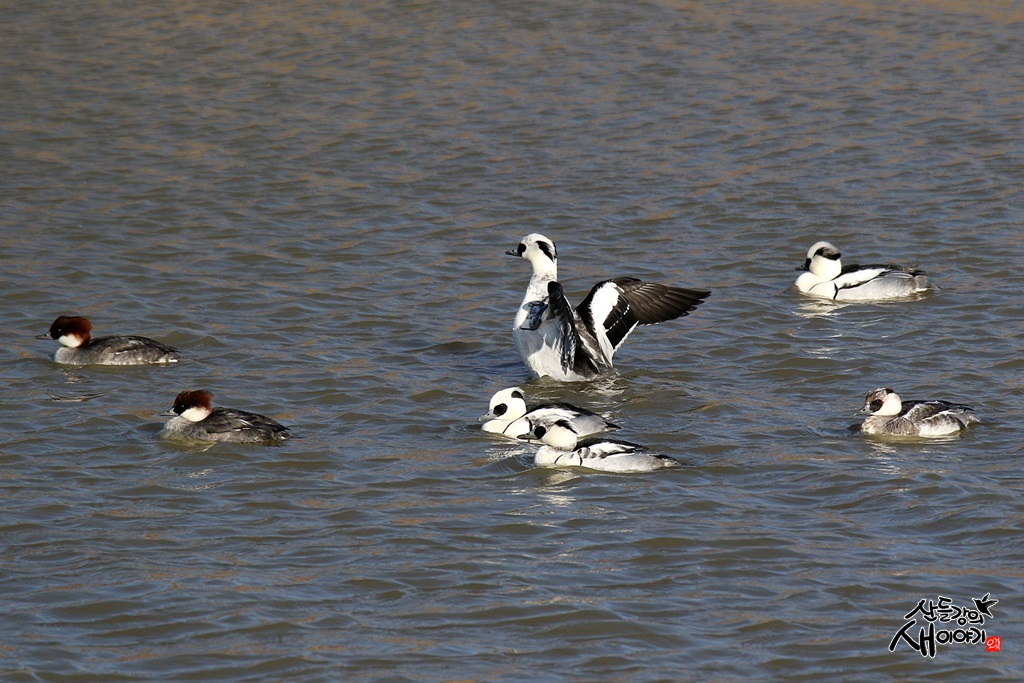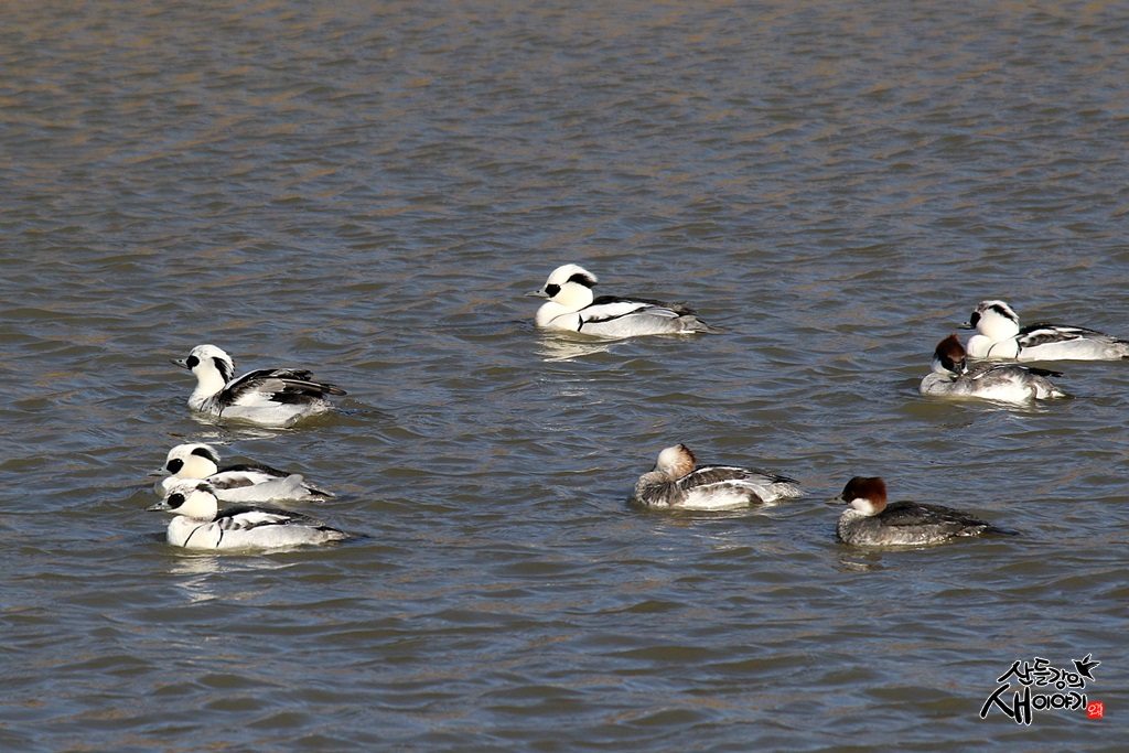 성탄절인 2021.12.25. 경남 창원시 의창구 동읍 주남저수지에서 탐조여행에 만난 흰비오리 수컷과 암컷입니다.