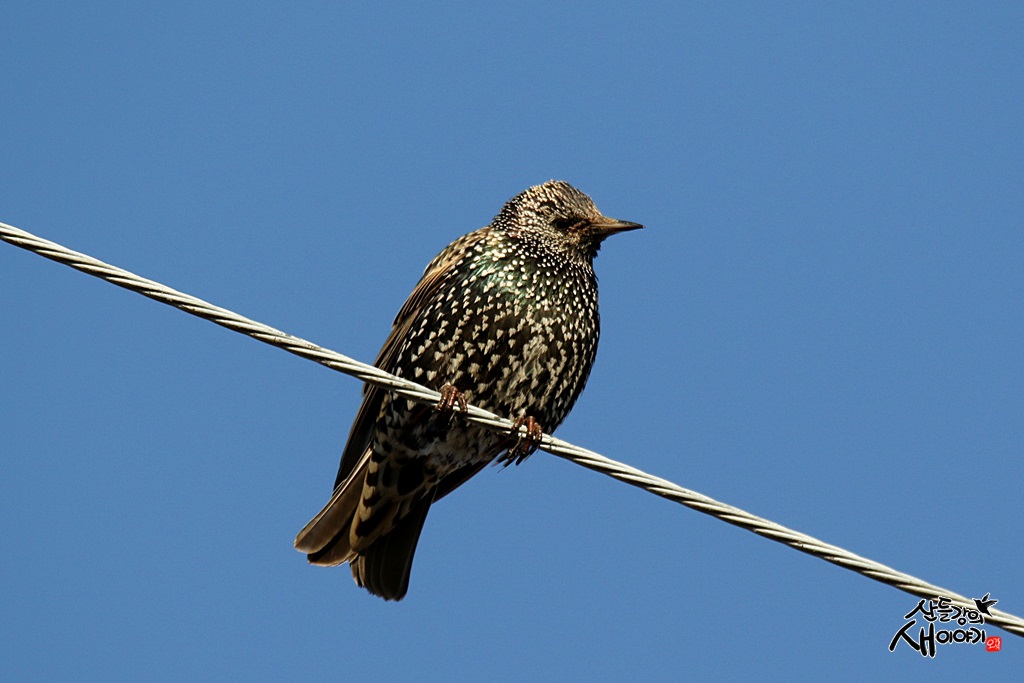 2022.1.2. 경남 창원지역의 주남저수지 인근 경작지에서 만난 흰점찌르레기로 찌르레기 무리에 몇마리 관찰됩니다.