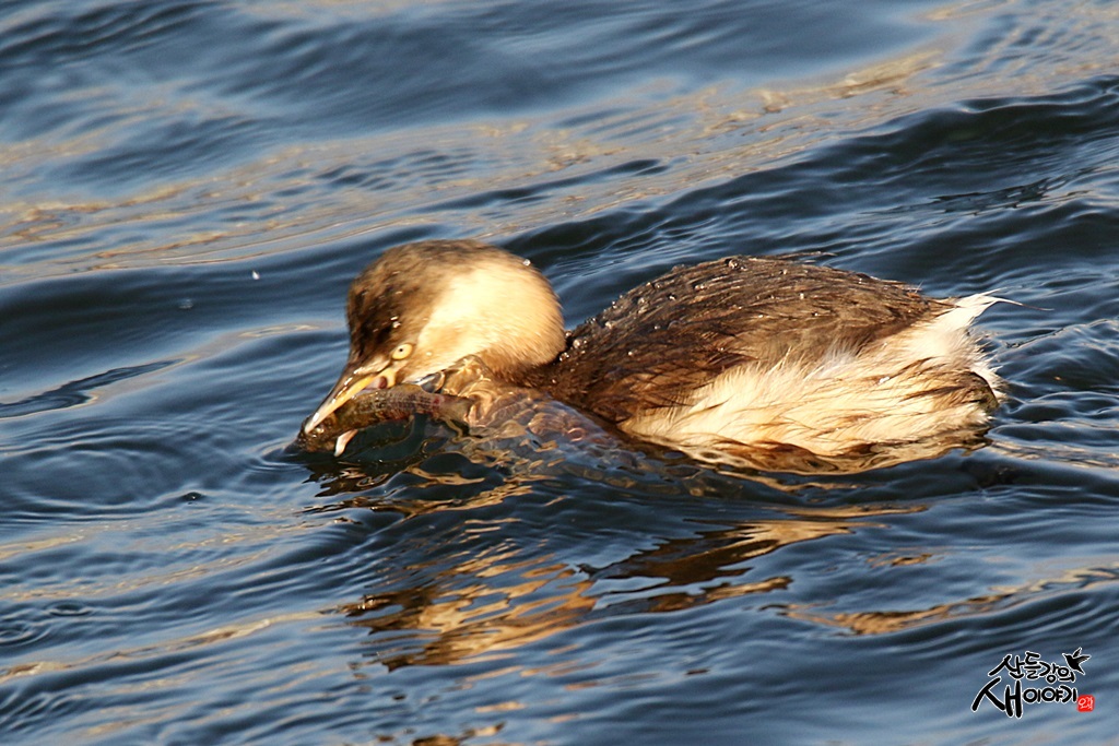 2022.1.22. 경북 포항시 남구를 지나가는 형산강에서 흰꼬리수리를 기다리다 만난 논병아리의 물고기 사냥장면입니다.