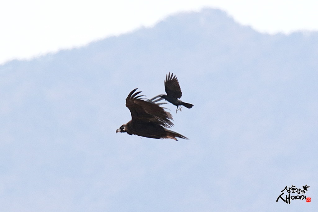 2022.1.28, 부산광역시를 탐조하던 중 독수리가 나타나니 까마귀가 나타나 등에 올라타더니 편안하게 즐기네요. ㅋㅋㅋ