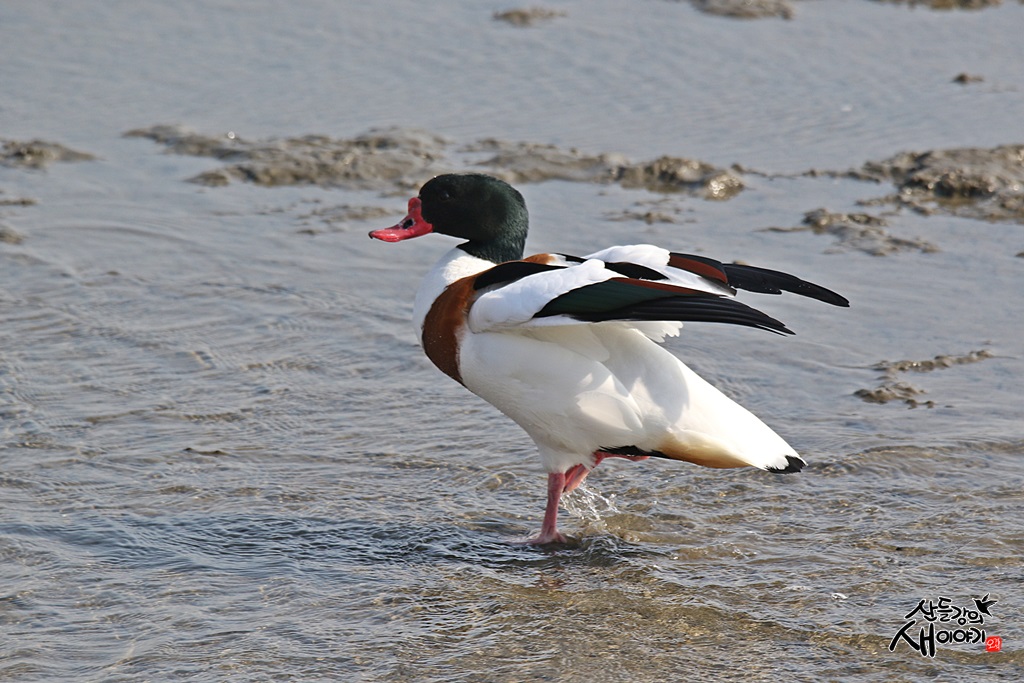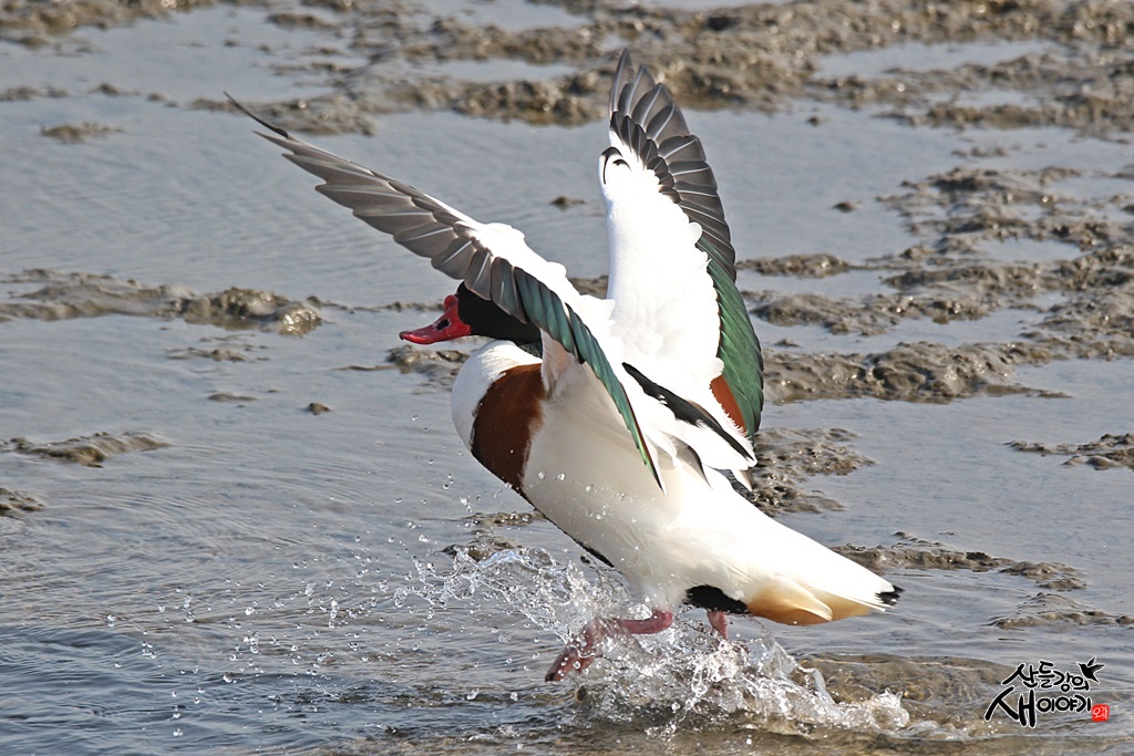 '22.2.12, 부산광역시 강서구 명지동 명지철새관찰대 앞 명지갯벌을 탐조하던 중 만난 혹부리오리 착륙장면입니다.