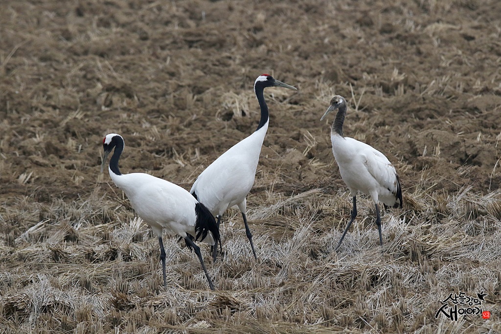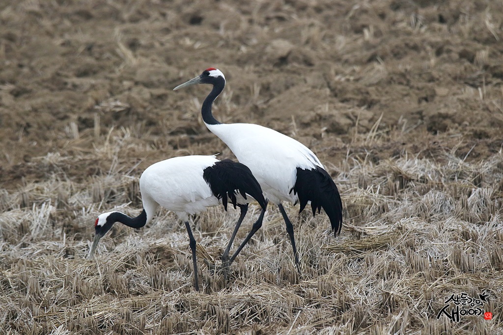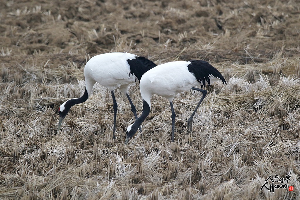 2022.2.26. 강원도 철원군 지역으로 탐조여행을 하면서 만난 두루미 즉 단정학의 논에서 먹이활동하는 장면입니다.