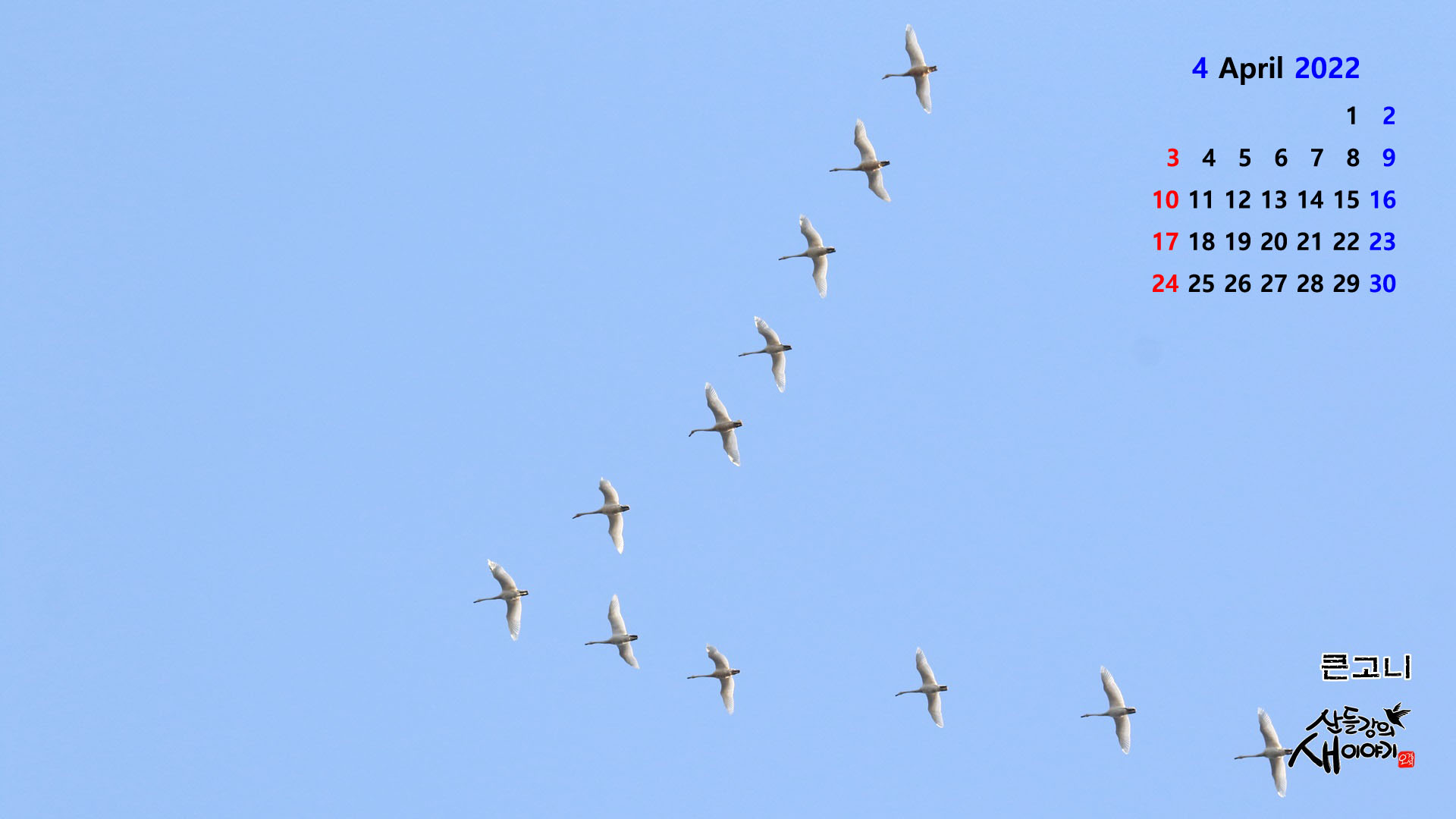 2022년 3월중 촬영한 새사진으로 만든 2022년 4월, PC바탕화면 달력(1920*1080)을 소개합니다.