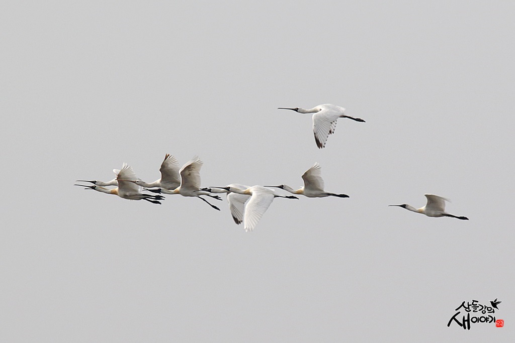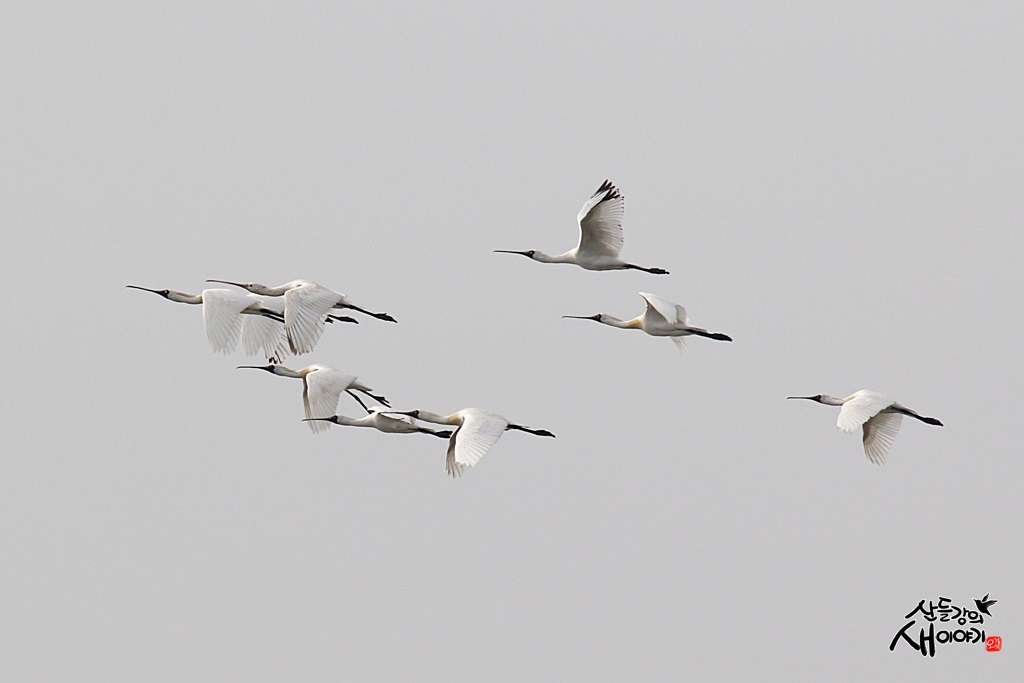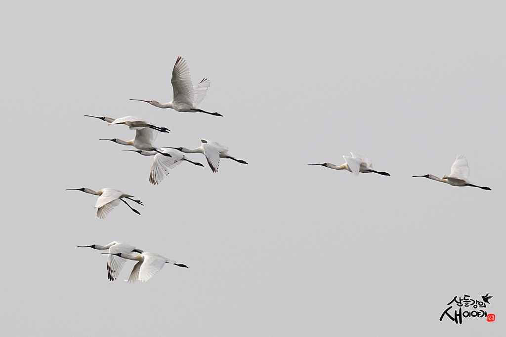 2022.6.4. 충청남도 서천군의 서해안 갯벌을 탐조하던 중 만난 멸종위기종&천연기념물인 저어새 무리의 비행장면입니다.