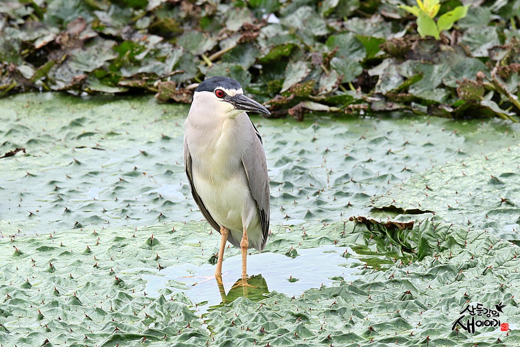 2022.7.31. 경상북도 경산시 일대의 작은 저수지를 탐조하던 중 만난 해오라기 날샷과 가시연 위에 앉은 장면입니다.