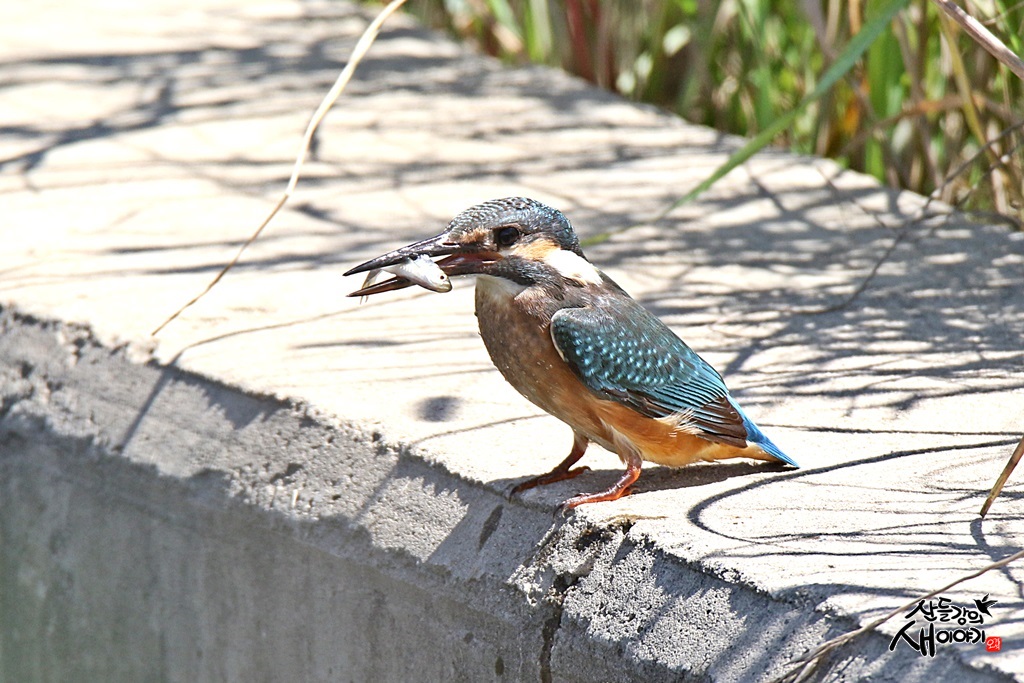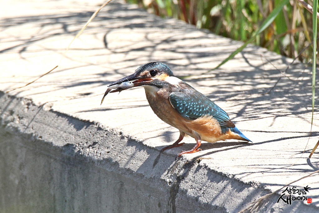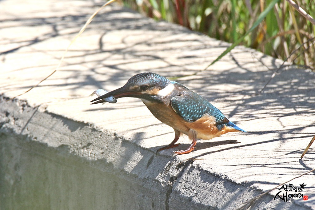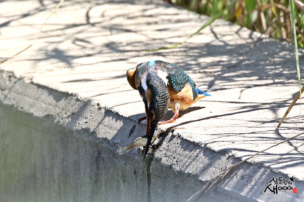 경기도 화성시의 작은하천에서 만난 물총새로 차량으로 이동 중 물총새를 만나 물고기 사냥하는 장면을 담았습니다.