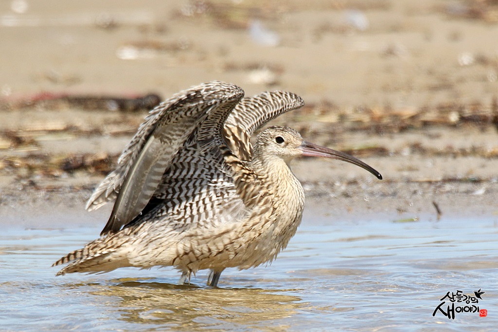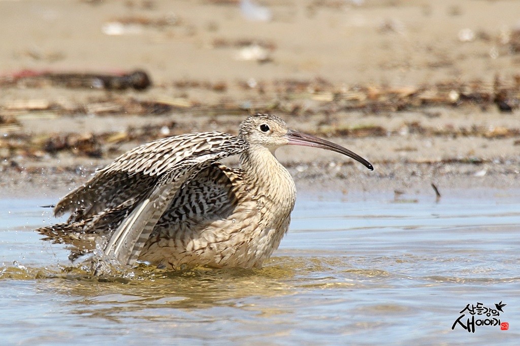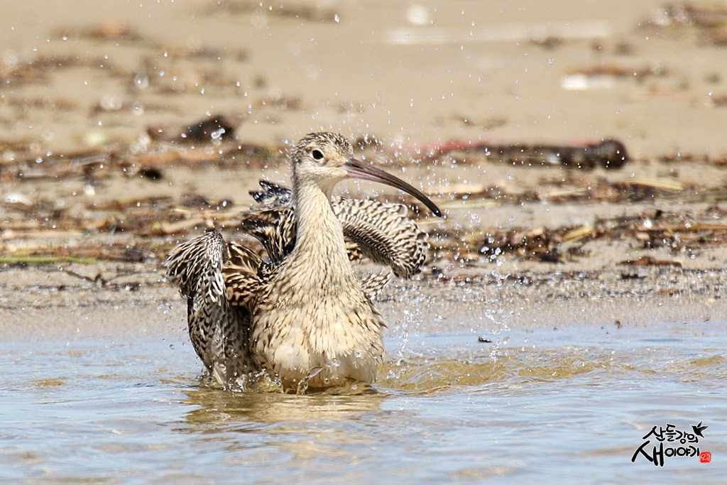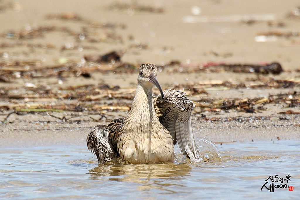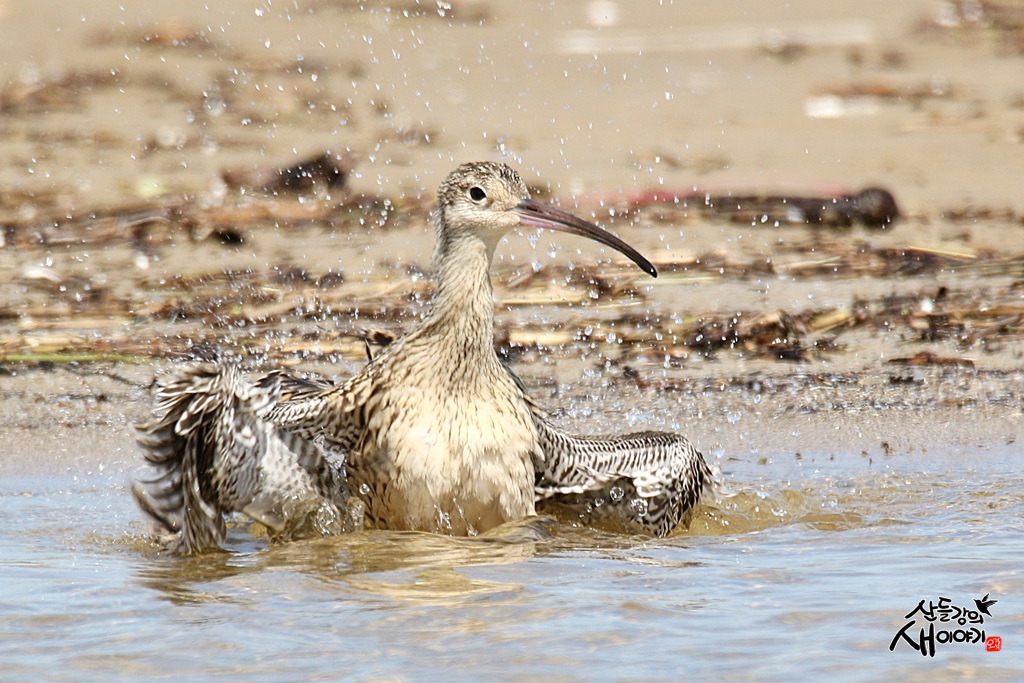 2022.9.8. 경상북도 포항시의 동해안 바닷가 작은 개울에서 탐조하던 중 만난 알락꼬리마도요의 목욕장면입니다.