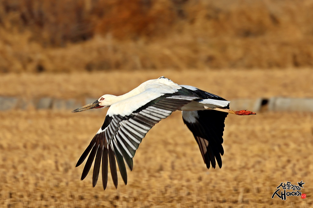 충청남도 서산시에 위치한 천수만을 탐조하던 중 만난 황새 비행샷 장면입니다. 관찰된 개체수는 5마리입니다.