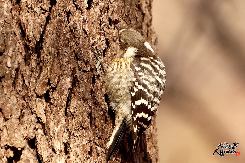 경상북도 성주군 수륜면의 작은 산을 탐조하던 중 만난 쇠딱다구리입니다. 먹이활동 중이네요.