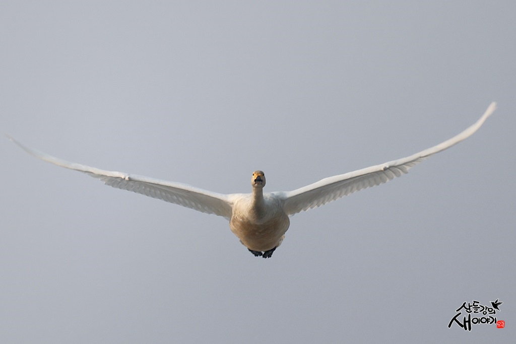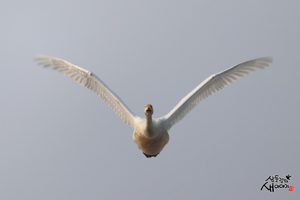 경기도 광주시 퇴촌면에 위치한 경안천습지생태공원을 탐조하던 중 만난 큰고니 비행샷 장면입니다. 200마리 보이네요.