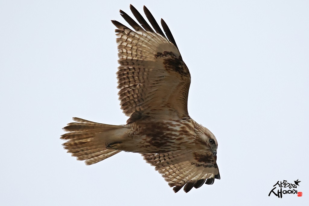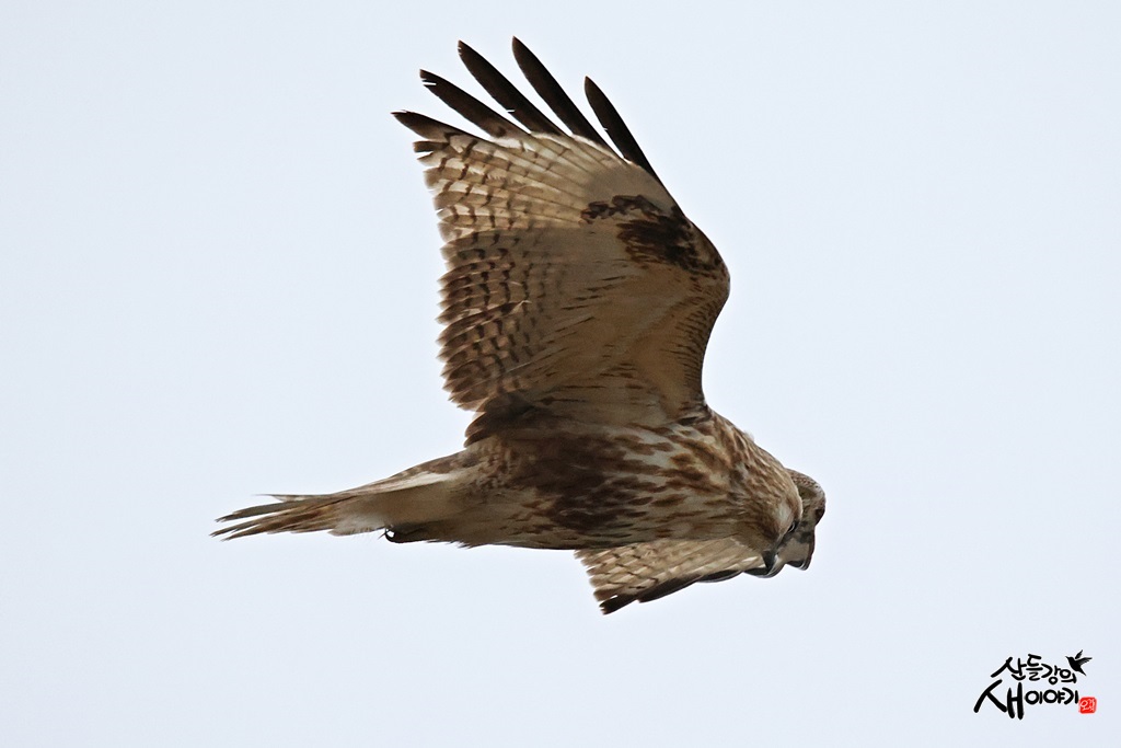 충청남도 서산시에 위치한 천수만을 탐조하던 중 만난 겨울철새이자 맹금류인 말똥가리의 바람을 타는 활공장면입니다.