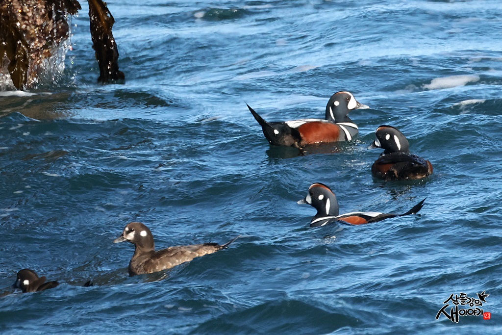 경상북도 포항시에 있는 동해안 바닷가를 탐조하던 중 만난 예쁜 흰줄박이오리입니다. 수컷은 목각인형을 닯았네요.