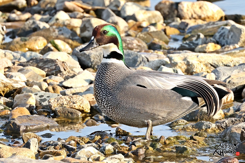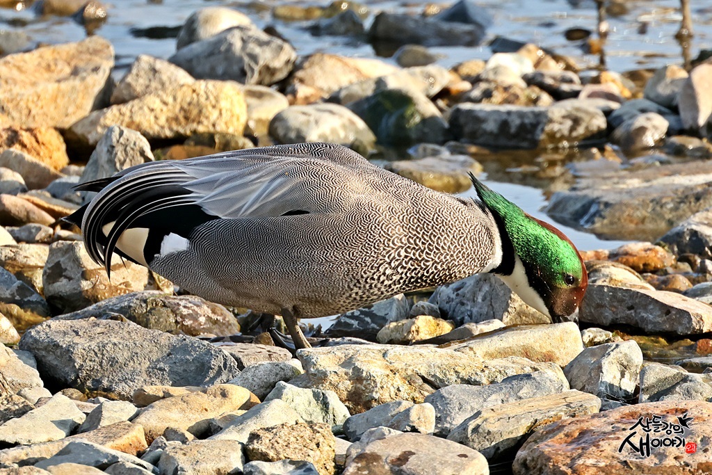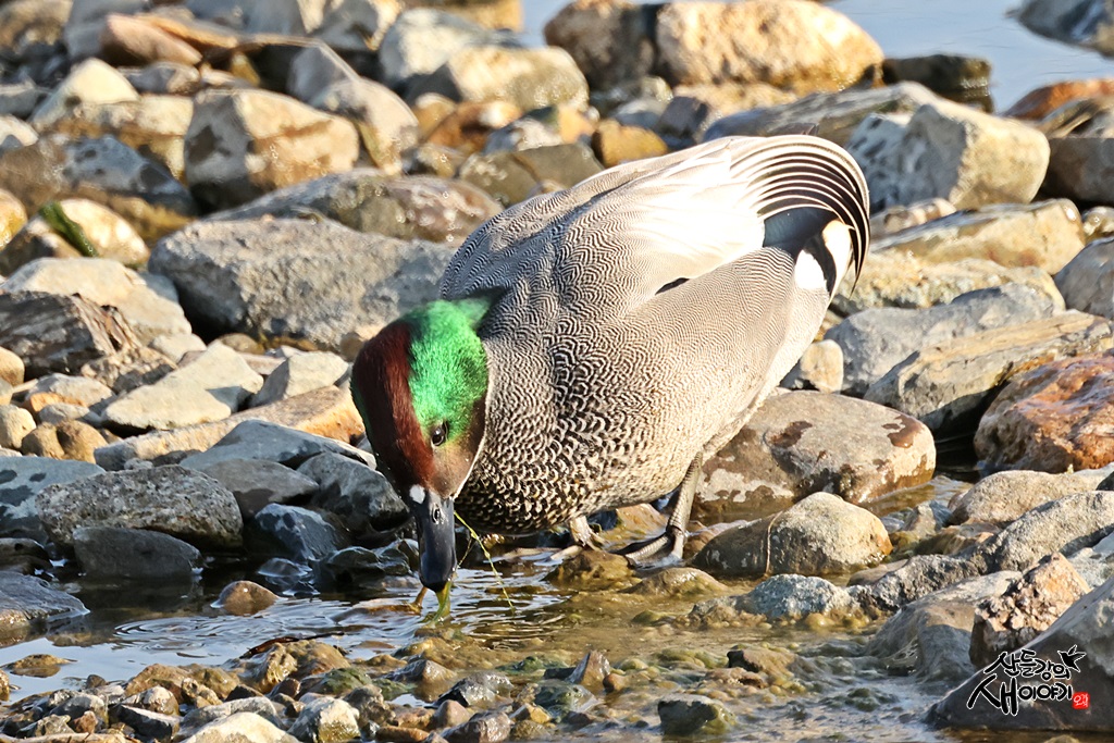 경상북도 청도군을 지나가는 청도천을 탐조하던 중 만난 청머리오리 수컷의 예쁜모습입니다. 개체수는 10여마리입니다.