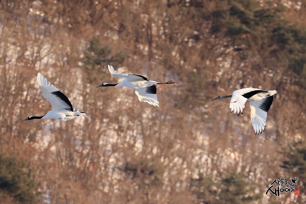 강원도 철원군의 철원평야를 탐조하던 중 만난 두루미 비행장면입니다. 두루미는 단정학, 백학이라고 불립니다.