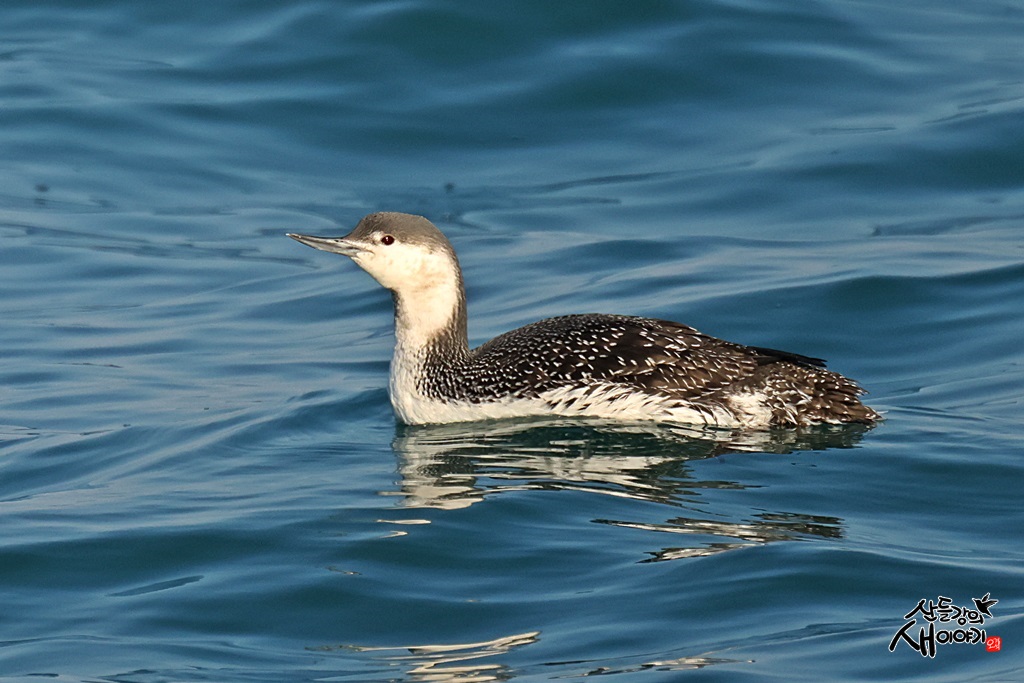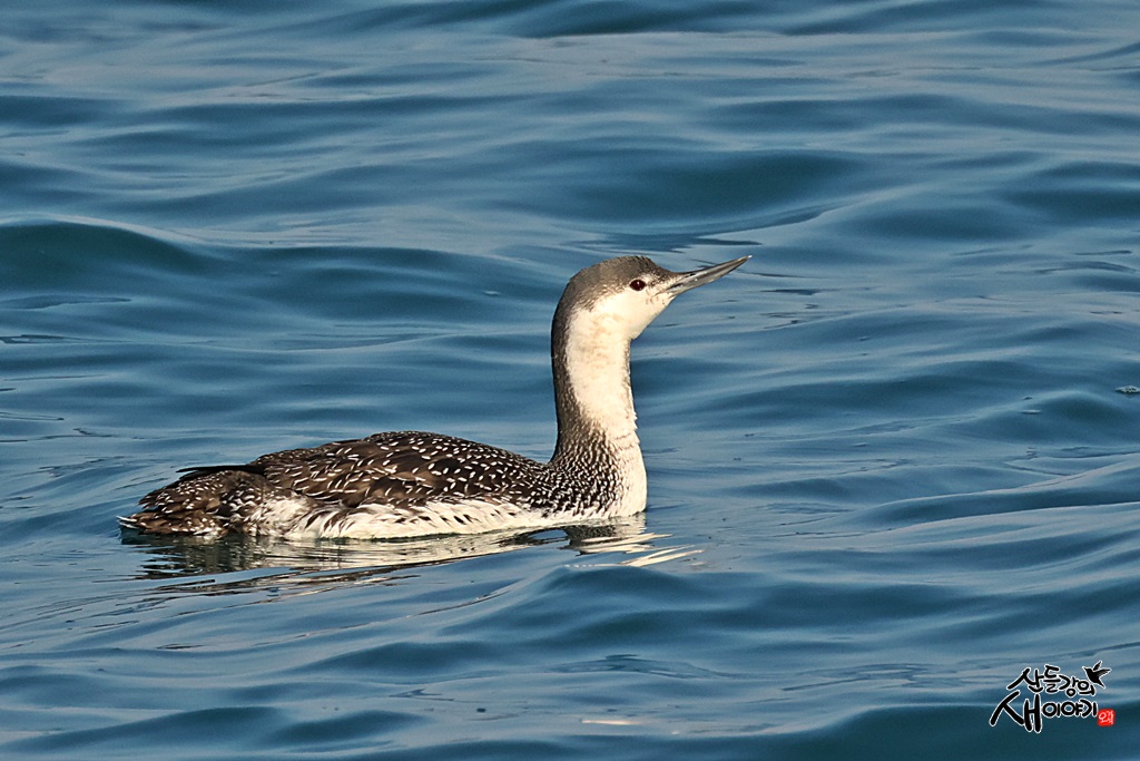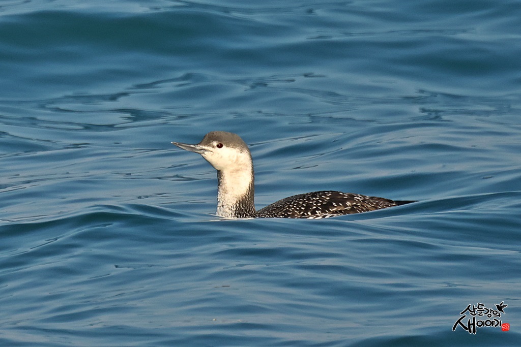 경상북도 울진군에 있는 평해사구를 탐조하던 중 만난 아비입니다. 동해안 파란 바닷물에 떠있는 한마리가 있었습니다.