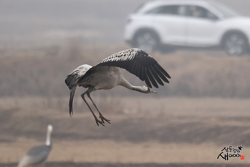 경상남도 창원시 의창구 동읍에 위치한 철새도래지 주남저수지를 탐조하던 중 만난 검은목두루미 비행샷입니다.